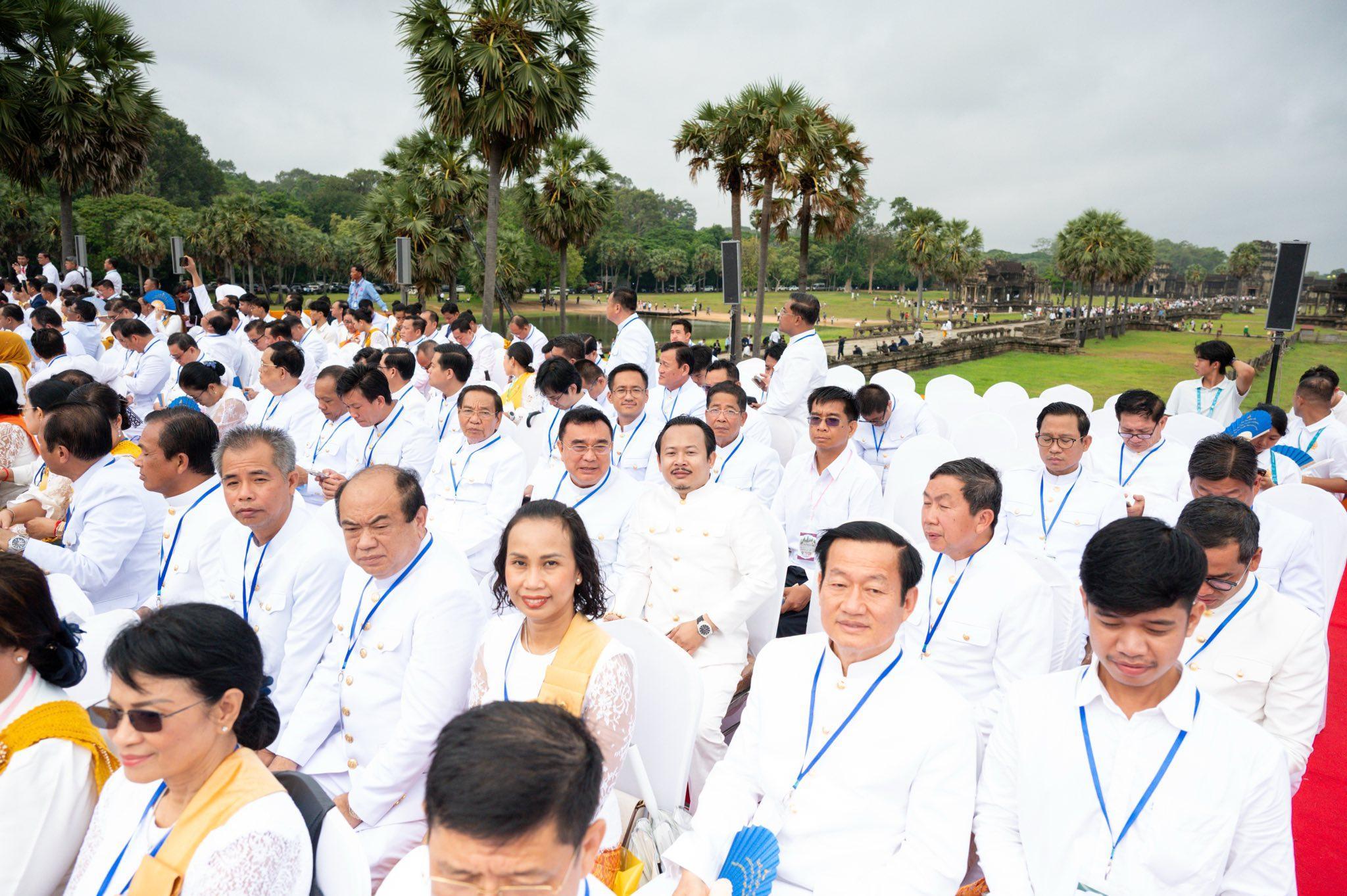 ក្នុងព្រះរាជពិធីយ៉ាងមហោឡារឹកក្រោមបរិយាកាសដ៏ត្រជាក់ត្រជំនាពេលព្រឹកព្រលឹមនាមុខប្រាសាទអង្គរដ៏ល្បាញល្បីរបស់ខ្មែរនោះ ក៏មានការអញ្ជើញចូលរួមពីសំណាក់សម្តេចតេជោ ហ៊ុន សែន ប្រធានព្រឹទ្ធសភាកម្ពុជា សម្តេចមហាបវរធិបតី ហ៊ុន ម៉ាណែត នាយករដ្ឋមន្ត្រីកម្ពុជា សម្តេចក្រឡាហោម ស ខេង សម្តេចពិជ័យសេនា ទៀ បាញ់ សម្តេចវិបុលសេនាភក្តី សាយ ឈុំ ព្រមទាំងថ្នាក់ដឹកនាំ និងសមាជិក សមាជិកា ព្រឹទ្ធសភា រដ្ឋសភា និងរាជរដ្ឋាភិបាលផងដែរ។ ក្នុងព្រះរាជពិធី ក៏មានការអញ្ជើញចូលរួមពីឯកអគ្គរាជទូត រដ្ឋទូត នៃបណ្តាប្រទេសជាមិត្ត ក៏ដូចជាមន្ត្រីរាជការ យុវជន និងប្រជាពលរដ្ឋក្នុងខេត្តសៀមរាបយ៉ាងច្រើនកុះករ។