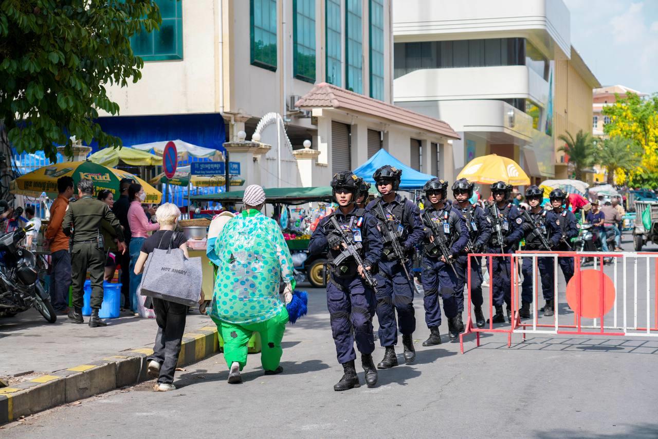 ភ្នំពេញ៖កម្លាំងកងរាជអាវុធហត្ថរាជធានីភ្នំពេញ បានចូលរួមជាមួយកម្លាំងនគរបាល និងអាជ្ញាធរ ការពារសន្តិសុខ សុវត្ថិភាព រក្សាសណ្ដាប់ធ្នាប់ និងសង្គ្រោះបន្ទាន់ ជូនដល់ថ្នាក់ដឹកនាំ បងប្អូនប្រជាពលរដ្ឋ ក៏ដូចជាភ្ញៀវទេសចរណ៍ជាតិ-អន្តរជាតិ ដែលបានមកលេងកម្សាន្តក្នុងកម្មវិធី «សង្ក្រាន្តវត្តភ្នំ» ស្វាគមន៍ សាទរ ពិធីបុណ្យចូលឆ្នាំថ្មី ប្រពៃណីជាតិខ្មែរ ២០២៥ នៅរមណីយដ្ឋានវប្បធម៌ប្រវត្តិសាស្រ្តវត្តភ្នំ នៅថ្ងៃទី១៤ ខែមេសា ឆ្នាំ២០២៥។