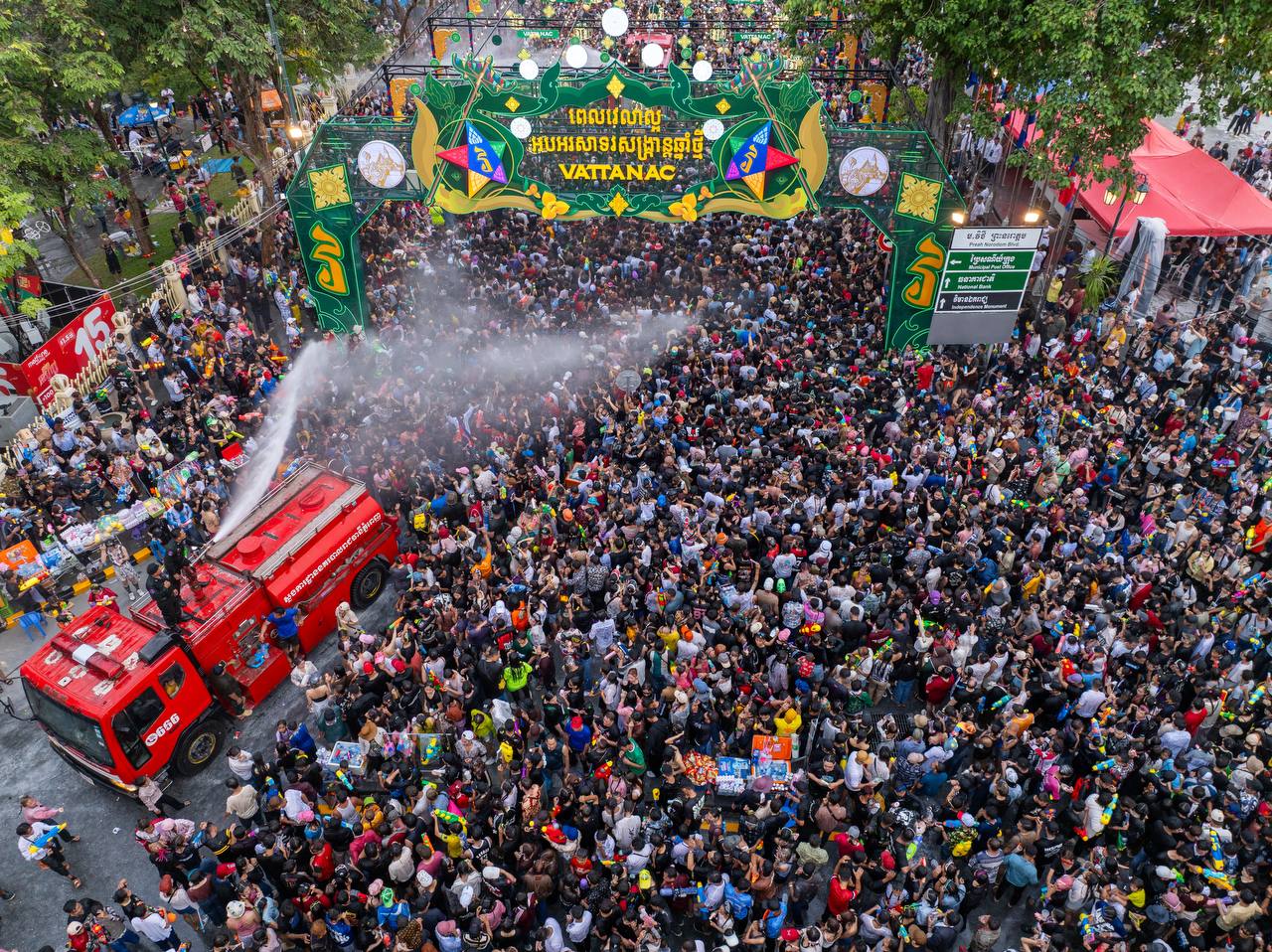ភ្នំពេញ៖ទិដ្ឋភាពអ៊ូអរកុះករនៅថ្ងៃទីពីរ វារៈវ័នបតនារមណីយដ្ឋានវប្បធម៌ប្រវត្តិសាស្ត្រវត្តភ្នំ ថ្ងៃទី១៥ ខែមេសា ឆ្នាំ២០២៥មានប្រជាពលរដ្ឋភ្ញៀវទេសចរជាតិនិងបរទេសចំនួន៨០ម៉ឺននាំគ្នាមកលេងកំសាន្តនៅតំបន់ត្រជាក់ចិត្ត«សង្ក្រានវត្តភ្នំ២០២៥»និងនៅតំបន់ផ្លូវថ្មើរជើង (Walk Street) មាត់ទន្លេក្រោមកិច្ចការពារសន្តិសុខ និងសណ្ដាប់ធ្នាប់របៀបរាបរយបានយ៉ាងល្អពីសំណាក់សមត្ថកិច្ចនិងអាជ្ញាធររាជធានីភ្នំពេញ។
