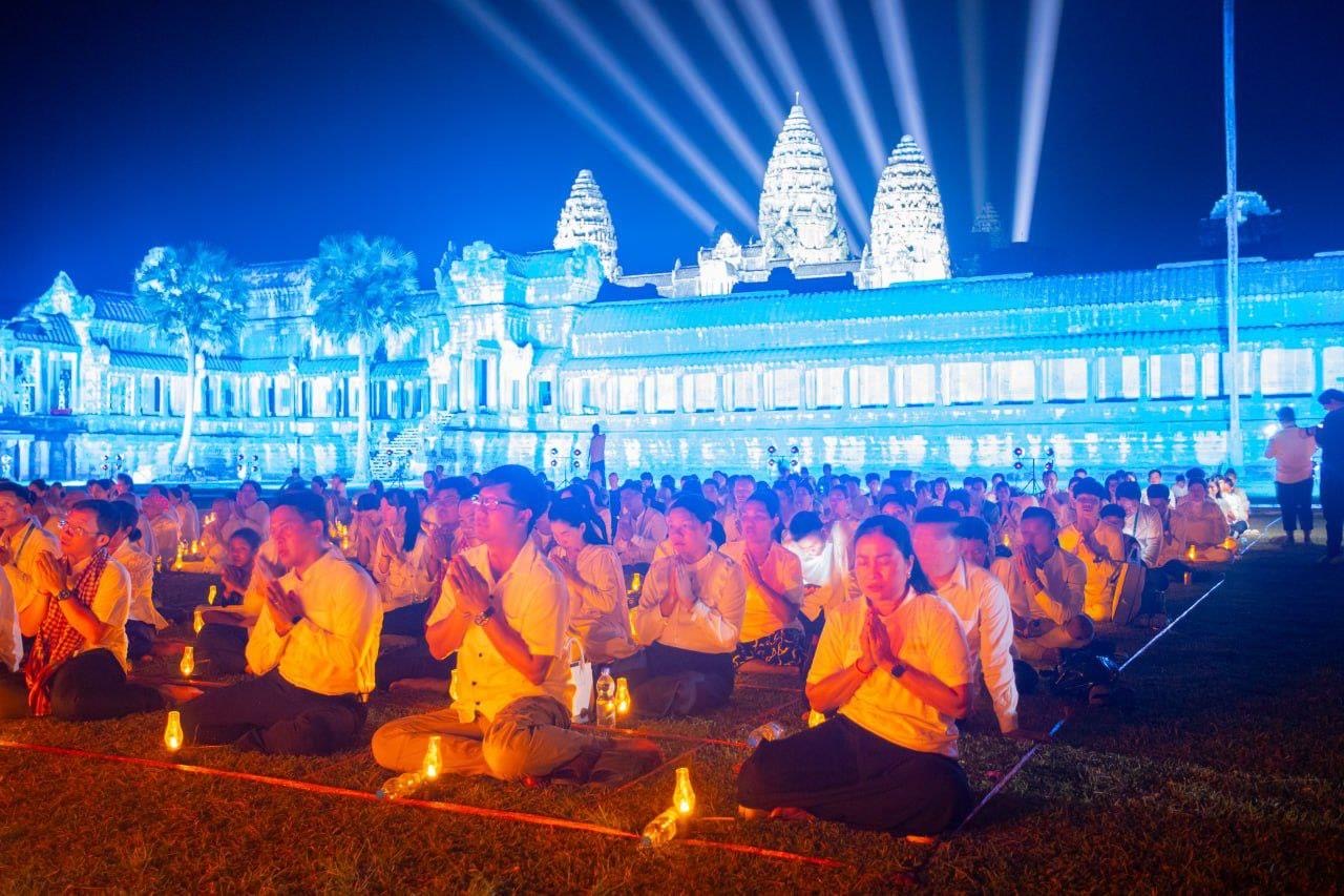 សៀមរាប៖សហភាពសហព័ន្ធយុវជនកម្ពុជា នៅល្ងាចថ្ងៃទី១៥ ខែមេសា ឆ្នាំ២០២៥ បានរៀបចំកម្មវិធីសមាធិ ក្នុងព្រឹត្តិការណ៍អង្គរសង្ក្រាន្តឆ្នាំ២០២៥ នៅក្ដាបែនខាងលិចប្រាសាទអង្គរវត្ត ដើម្បីរំលេចពីផ្នែកមួយរបស់សាសនា ដែលជួយធ្វើឱ្យសុខភាពផ្លូវចិត្តបានល្អប្រសើរ។