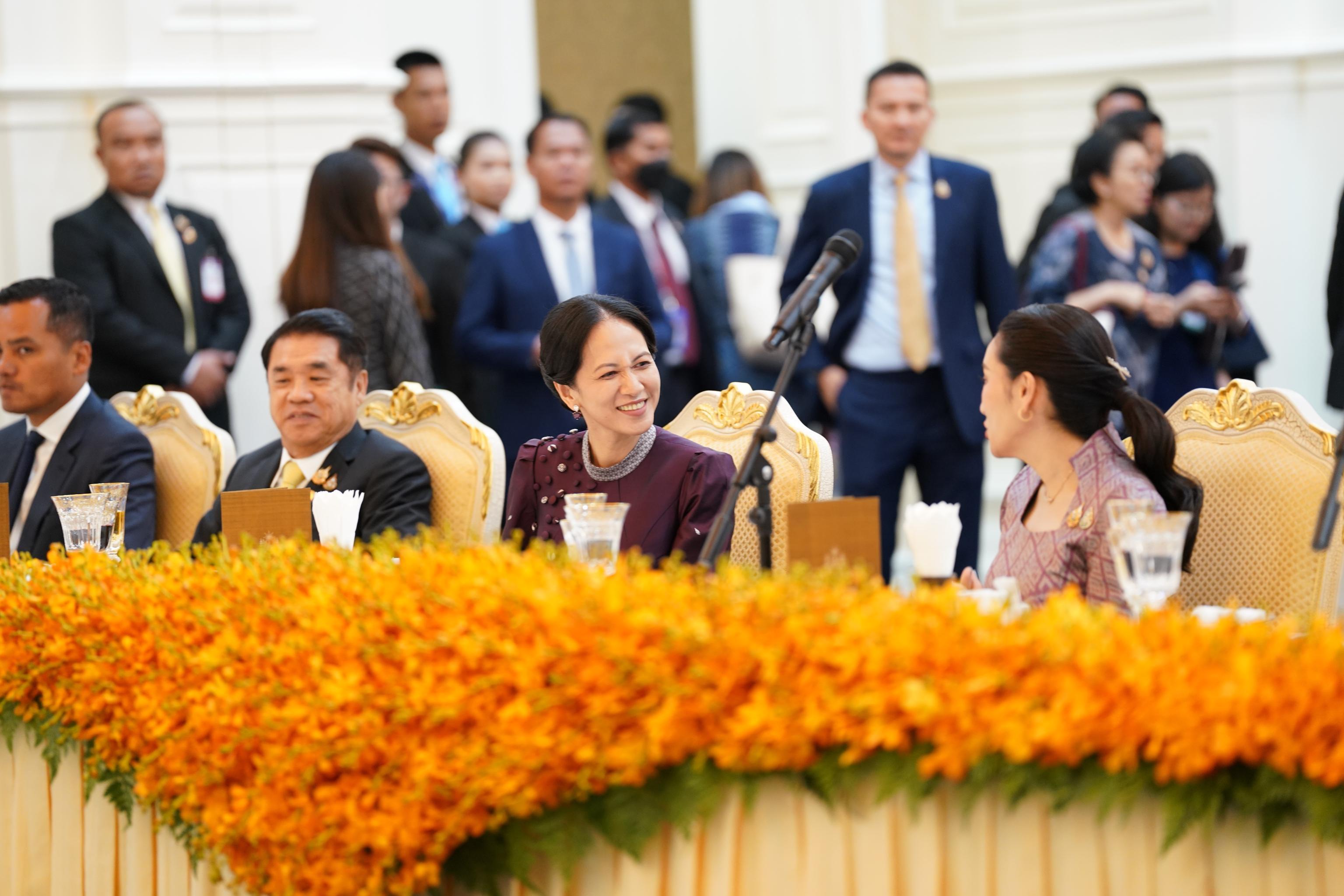 ភ្នំពេញ៖សម្តេចមហាបវរធិបតី ហ៊ុន ម៉ាណែត នាយករដ្ឋមន្រ្តីនៃកម្ពុជា នៅវេលាថ្ងៃត្រង់ ថ្ងៃទី២៣ ខែមេសា ឆ្នាំ២០២៥នេះ បានរៀបចំពិធីជប់លៀងផ្លូវការនៅវិមានសន្តិភាពដើម្បីទទួលស្វាគមន៍ លោកជំទាវ ផែផងថាន ស៊ីណាវ៉ាត្រ នាយករដ្ឋមន្ត្រីថៃ និងស្វាមី ដែលអញ្ជើញមកបំពេញទស្សនកិច្ចផ្លូវការនៅកម្ពុជា។