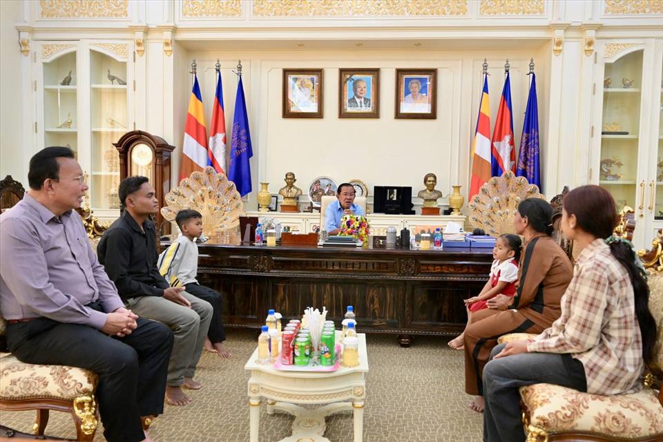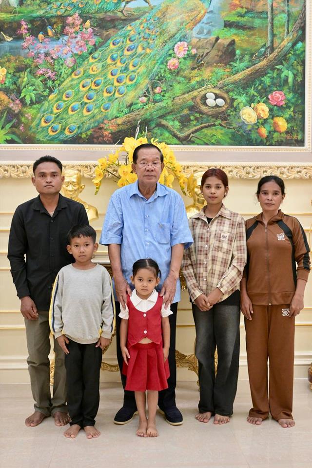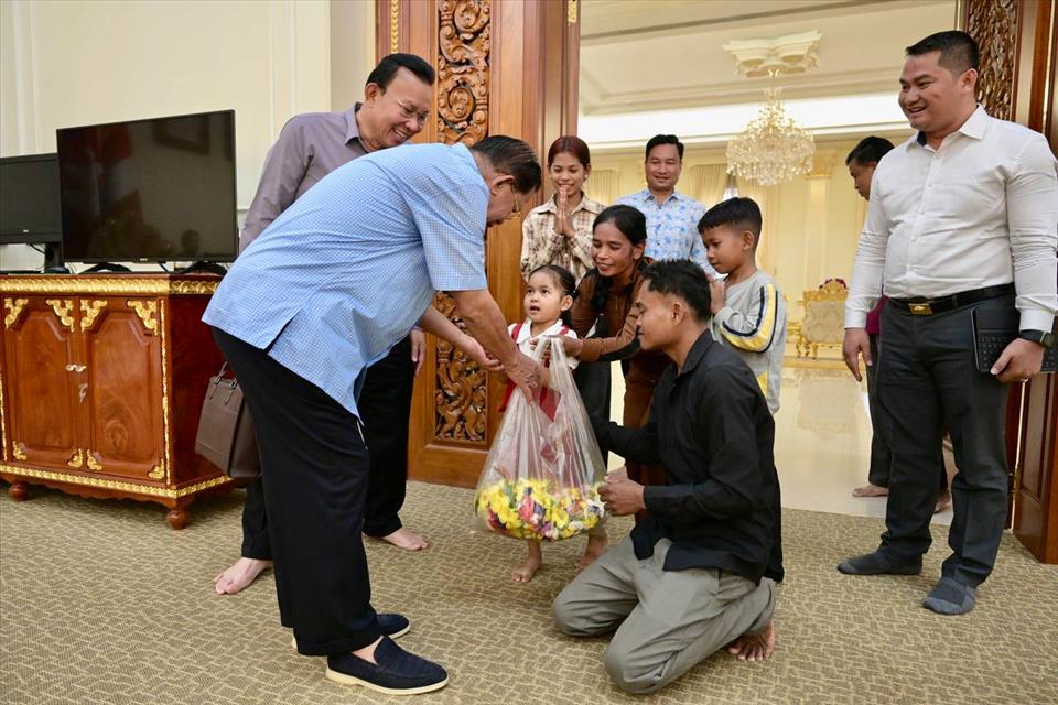 ភ្នំពេញ៖នៅរសៀលថ្ងៃអាទិត្យ ១កើត ខែពិសាខ ឆ្នាំម្សាញ់ សប្តស័ក ពុទ្ធសករាជ ២៥៦៨ ត្រូវនឹងថ្ងៃទី២៧ ខែមេសា ឆ្នាំ២០២៥នេះ សម្តេចតេជោ ហ៊ុន សែន ប្រធានព្រឹទ្ធសភានៃកម្ពុជា អនុញ្ញាតឱ្យក្រុមគ្រួសាររបស់កុមារី ស៊ុន ស្រីតី (ចៅស្រីតូច លក់ផ្កា) ចូលជួប និងបានសួរសុខទុក្ខនៅភូមិគ្រឹះតាខ្មៅ។