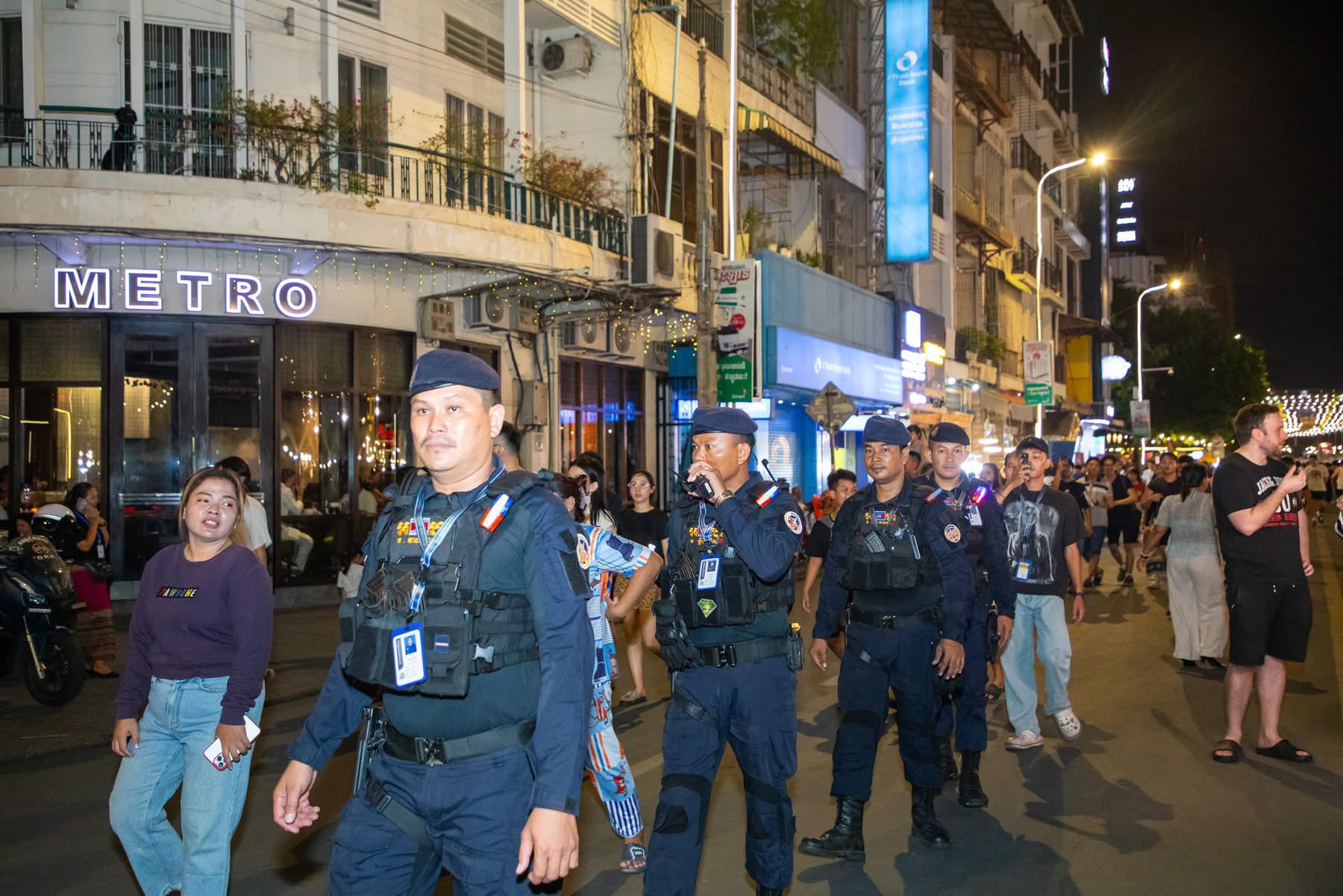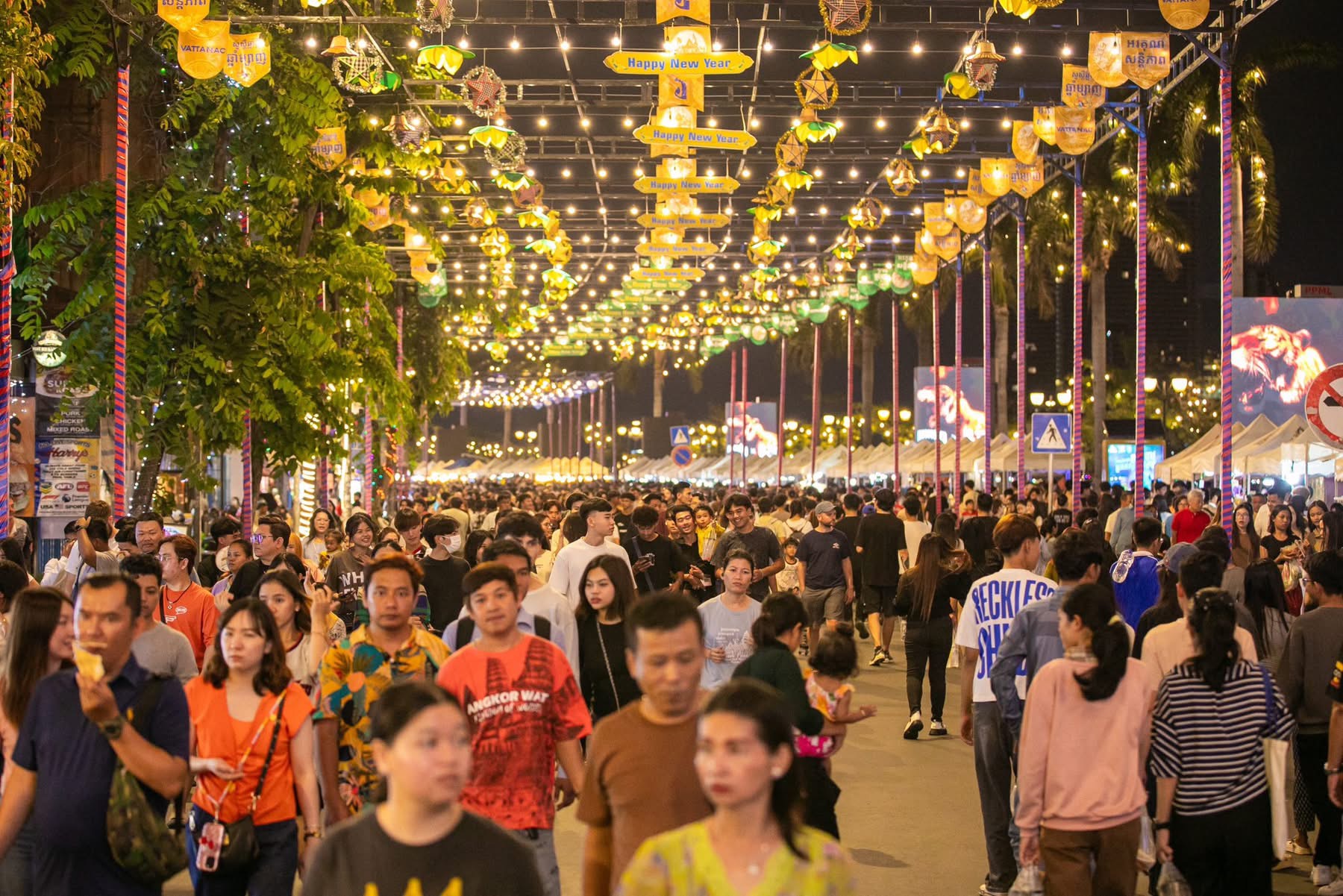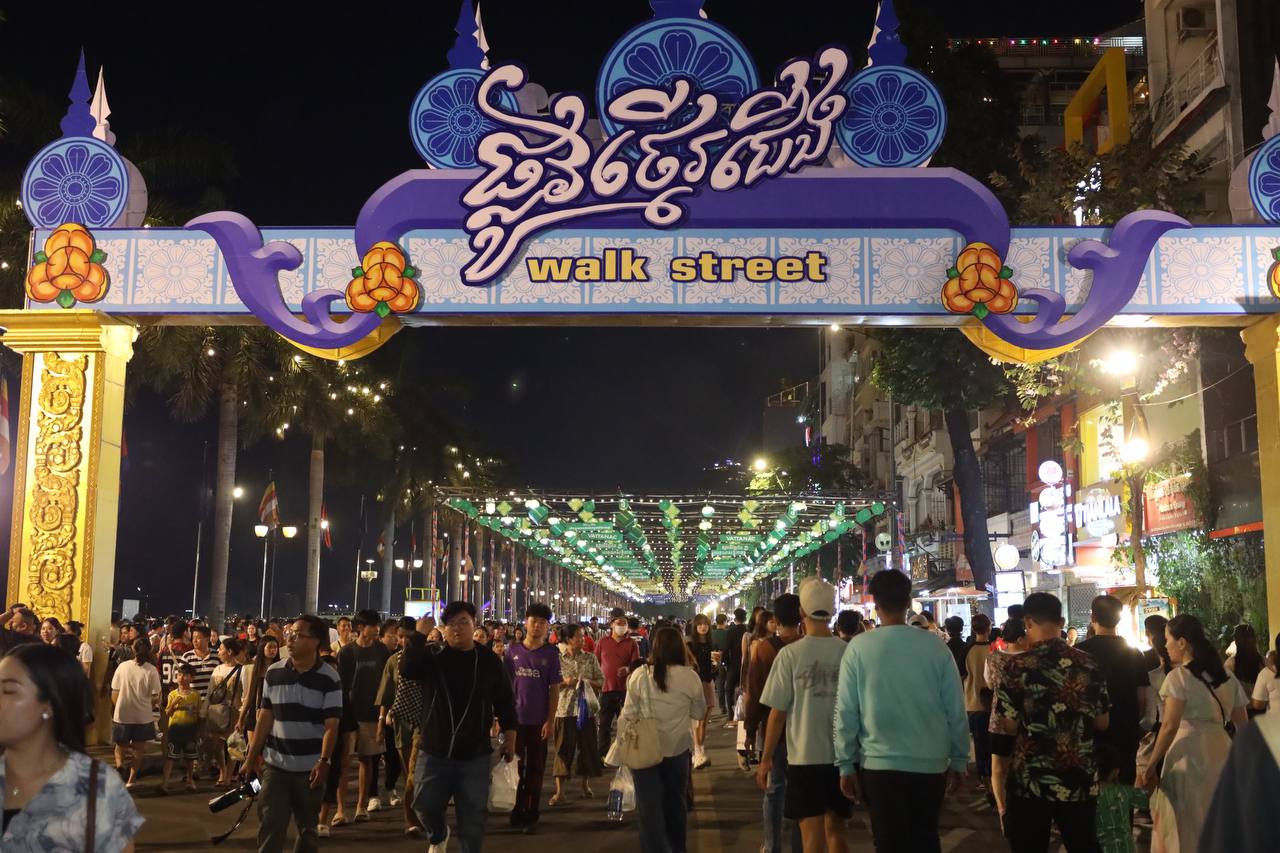 ភ្នំពេញ៖ឯកឧត្ដមឃួង ស្រេង អភិបាលនៃគណៈអភិបាលរាជធានីភ្នំពេញ និងលោកជំទាវដោយមានការរួមដំណើរពីមន្ត្រីរដ្ឋបាលរាជធានីនិងអាជ្ញាធរខណ្ឌដូនពេញកាលពីរាត្រីថ្ងៃអាទិត្យទី២៧ មេសា ២០២៥បានអញ្ជើញចុះពិនិត្យវឌ្ឍនភាពនិងដើរលេងកំសាន្ត លើផ្លូវថ្មើរជើង(Walk Street) ខណៈផ្លូវនេះកំពុងពេញនិយមនិងបានធ្វើឱ្យរាជធានីភ្នំពេញជាប់ចំណាត់ថ្នាក់លេខ២ លើពិភពលោក ឈ្មោះថា ជា«ទីក្រុងប្រជុំដោយភាពរីករាយនៅពេលរាត្រី»។