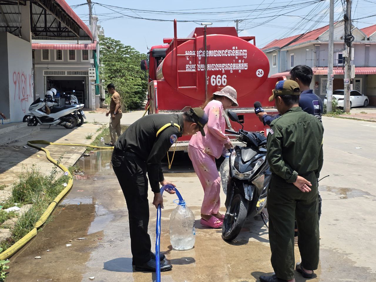 ក្រុមការងាររដ្ឋបាលរាជធានីដឹកទឹកស្អាតចែកជូនប្រជាពលរដ្ឋរស់នៅក្នុងបុរីVIP នៅភូមិម៉ឺនត្រា សង្កាត់ស្ពានថ្ម ខណ្ឌដង្កោ ខណៈតំបន់នេះ មានបញ្ហាខ្វះទឹកស្អាតប្រើប្រាស់