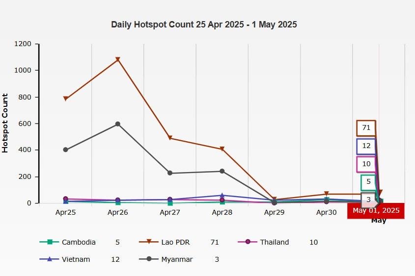 ភ្នំពេញ៖ក្រសួងបរិស្ថាន ជូនដំណឹងអំពីស្ថានភាពគុណភាពខ្យល់នៅក្នុងព្រះរាជាណាចក្រកម្ពុជា សម្រាប់ថ្ងៃទី១ ខែឧសភា ឆ្នាំ២០២៥ ចាប់ពីម៉ោង ៧ព្រឹក ដល់ម៉ោង ៧ព្រឹក ថ្ងៃទី២ ខែឧសភា ឆ្នាំ២០២៥ ដែលមានកំហាប់ភាគល្អិតនិចលគិតជាមធ្យមស្មើនឹង១៧.៣៣ µg/m3 ធៀបនឹងស្តង់ដារ ៥០ ug/m3 និងគិតជាសន្ទស្សន៍គុណភាពខ្យល់ (Air Quality Index) គឺ «ល្អណាស់»។