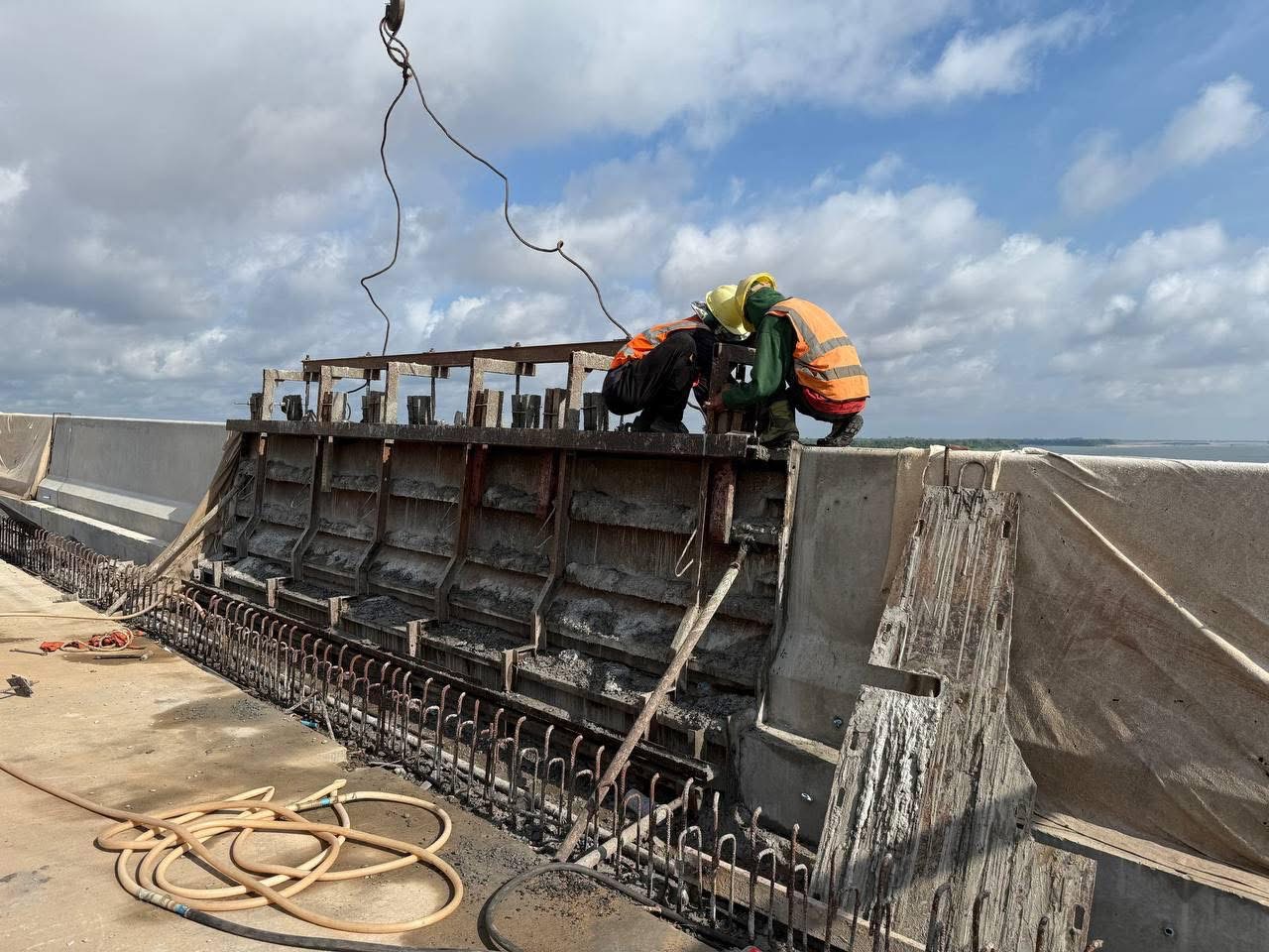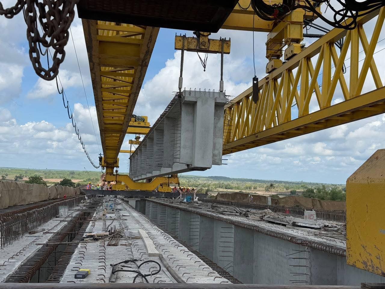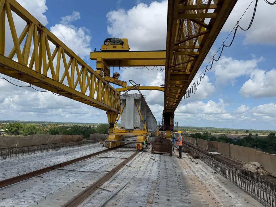 ស្ពានឆ្លងកាត់ទន្លេមេគង្គខេត្តក្រចេះ បានដំឡើងធ្នឹមទាំងអស់ហើយ ដើម្បីភ្ជាប់តួស្ពានទាំងមូល, សម្រេចលទ្ធផល ៩៤,១០%ហើយ