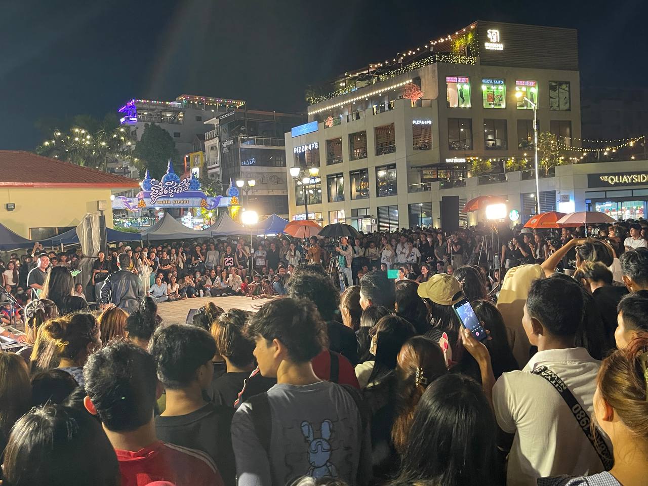 ភ្នំពេញ៖សំរាប់រាត្រីថ្ងៃអាទិត្យទី១១ ឧសភានេះ នៅលើផ្លូវថ្មើរជើង(Walk Street)អ្វីដែលជាការកត់សំគាល់ មានការប្រគុំតន្ត្រីខ្នាតតូចរបស់ផលឹតកម្មហង្សមាសនិងការសម្ដែងល្ខោនខោល​