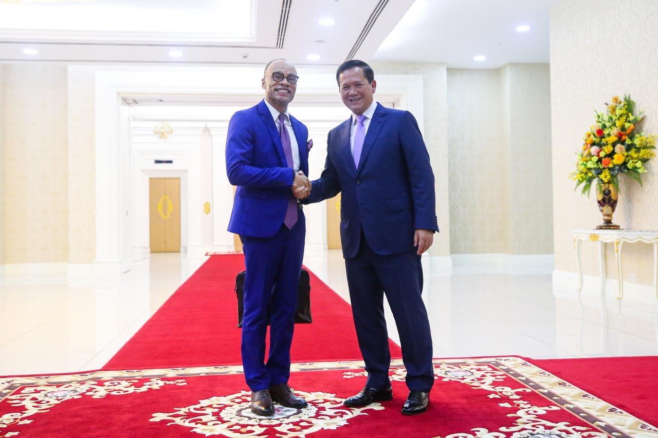 ភ្នំពេញ៖សម្តេចមហាបវរធិបតី ហ៊ុន ម៉ាណែត នាយករដ្ឋមន្ត្រីនៃព្រះរាជាណាចក្រកម្ពុជា នារសៀលថ្ងៃទី១៣ ខែឧសភា ឆ្នាំ២០២៥ បានអនុញ្ញាតឱ្យលោក Lucius Daniels នាយកប្រចាំតំបន់អាស៊ីនៃក្រុមហ៊ុន The Report Company ចូលសម្តែងការគួរសម។
