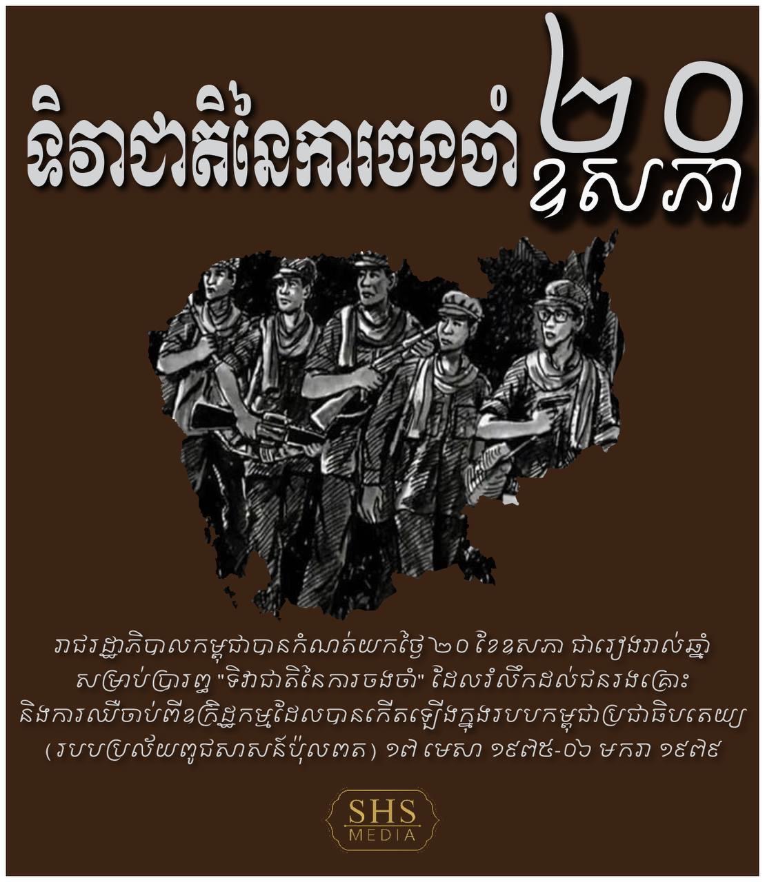 ភ្នំពេញ៖នៅថ្ងៃទី២០ ខែឧសភា ឆ្នាំ២០២៥នេះ គឺជាថ្ងៃទិវាជាតិនៃការចងចាំ ២០ ឧសភា ដែលប្រជាពលរដ្ឋគ្រប់រូបចងចាំមិនភ្លេច នូវរបបប្រល័យពូជសាសន៍ ប៉ុល ពត ជារបបដ៏ឃោរឃៅ និងខ្មៅងងឹត, សម្តេចតេជោ ហ៊ុន សែន ប្រធានព្រឹទ្ធសភាកម្ពុជា និងជាអ្នកតស៊ូរំដោះកម្ពុជាចេញពីរបបប្រល័យពូជសាសន៍នេះ បានបន្តអំពាវនាវដល់បងប្អូនជនរួមជាតិ សូមចូលរួមថែរក្សាការពារសន្តិភាពឱ្យបានគង់វង្ស កុំឱ្យរបបប្រល័យពូជសាសន៍វិលត្រឡប់មកវិញ។