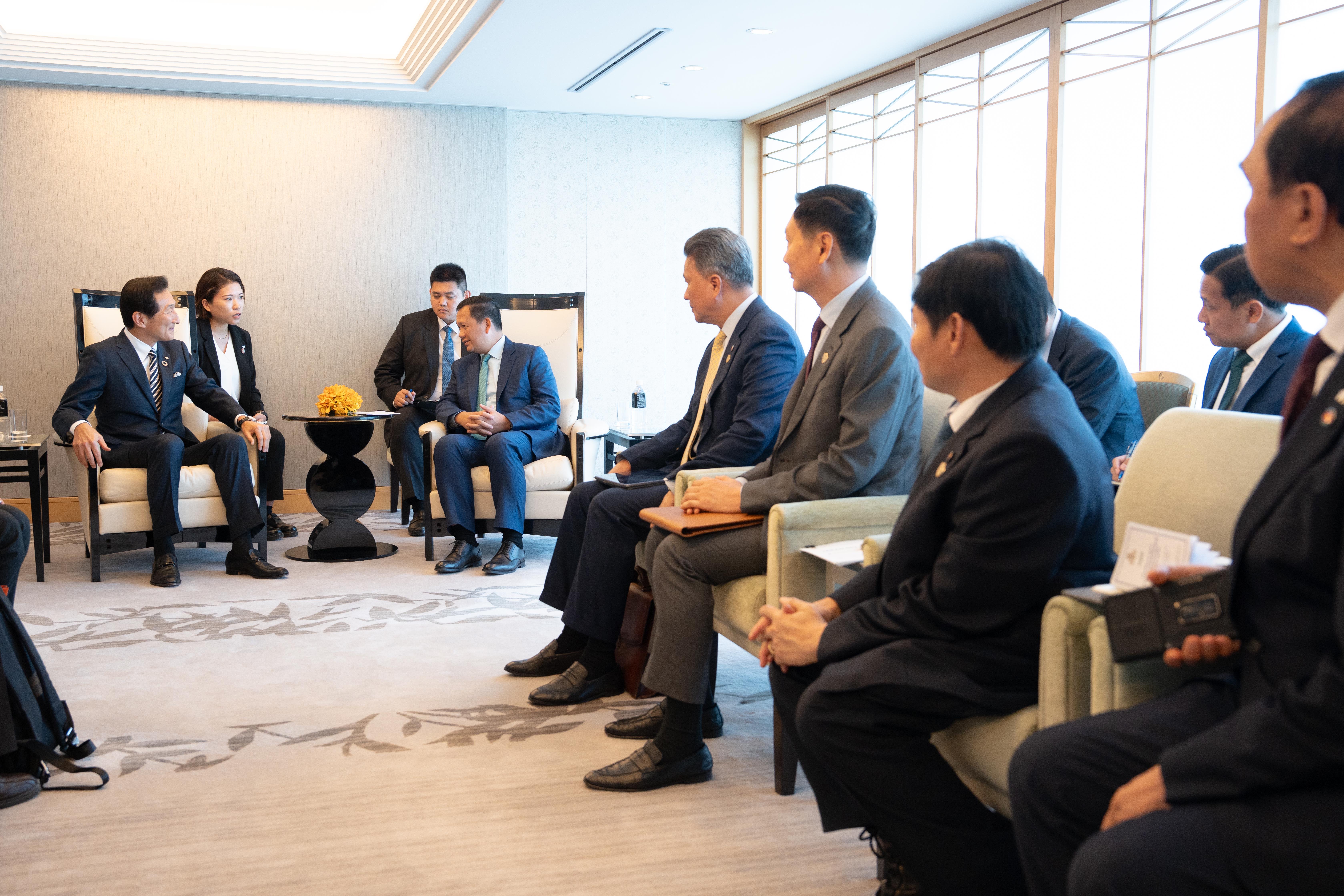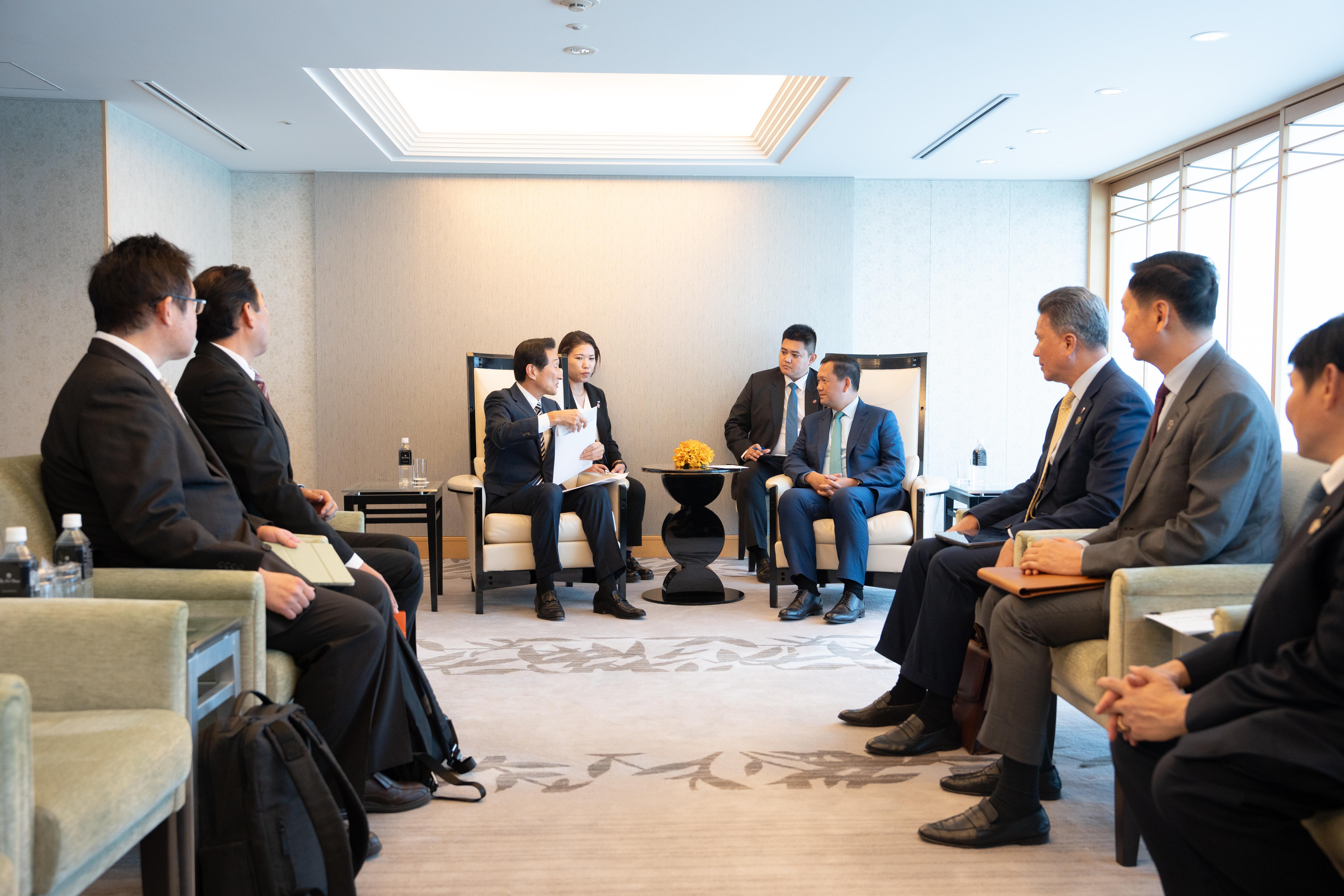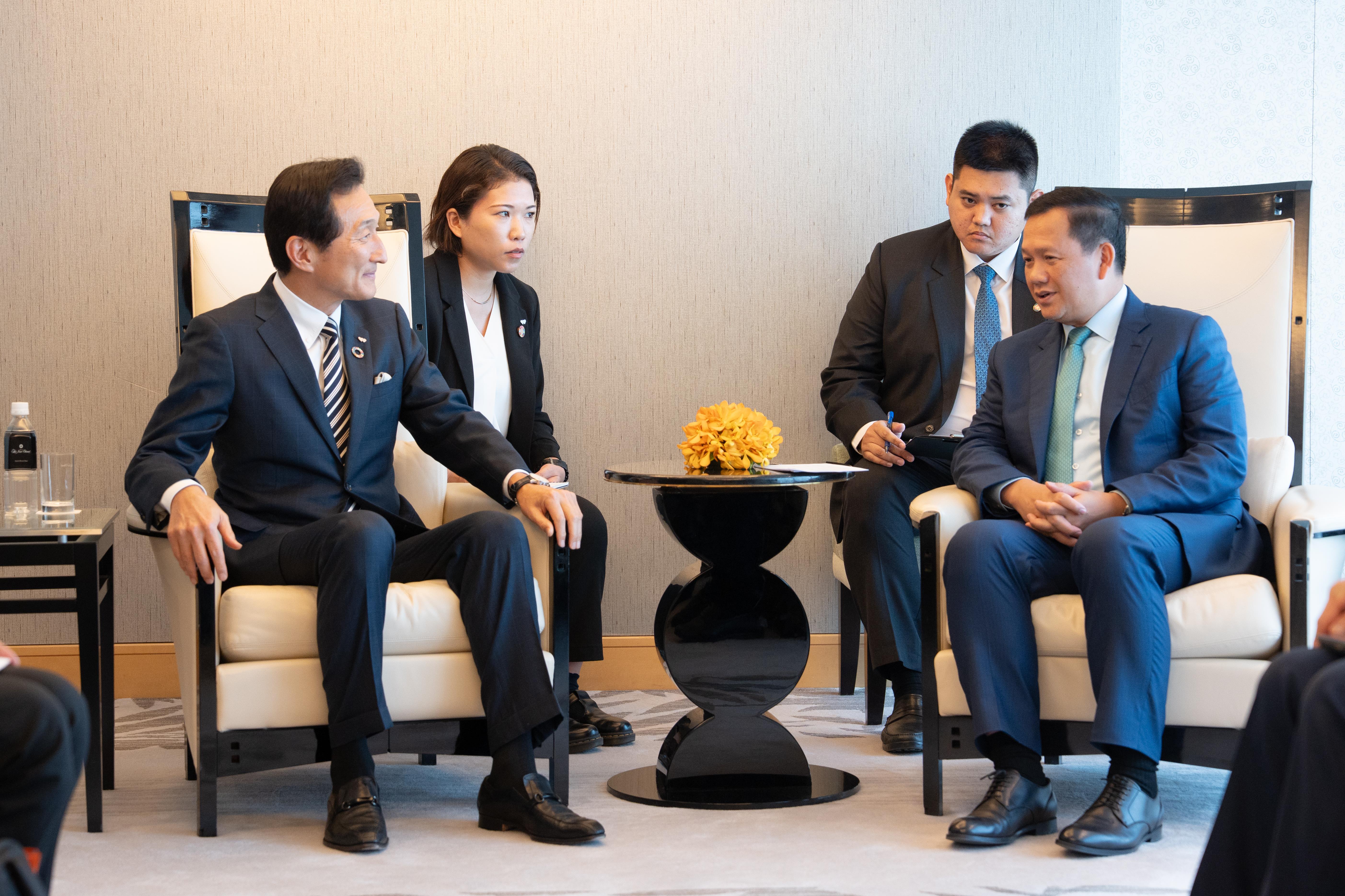ក្រុងតូក្យូ, ជប៉ុន៖នារសៀលថ្ងៃទី២៨ ខែឧសភា ឆ្នាំ២០២៥នេះ សម្ដេចមហា បវរធិបតី ហ៊ុន ម៉ាណែត នាយករដ្ឋមន្ត្រីកម្ពុជា បានអនុញ្ញាតឱ្យលោក MIKI Watanabe អគ្គនាយកក្រុមហ៊ុន Watami Co., Ltd. និងជា អគ្គ នាយកអង្គការ School Aid Japan និងសហការី ចូលជួបសម្ដែងការ គួរ សម និងពិភាក្សាការងារនៅក្នុងឱកាសនៃដំណើរទស្សនកិច្ចការងារផ្លូវការ នៅទីក្រុងតូក្យូ ប្រទេសជប៉ុន ពីថ្ងៃទី២៨-៣១ ខែឧសភា ឆ្នាំ២០២៥។