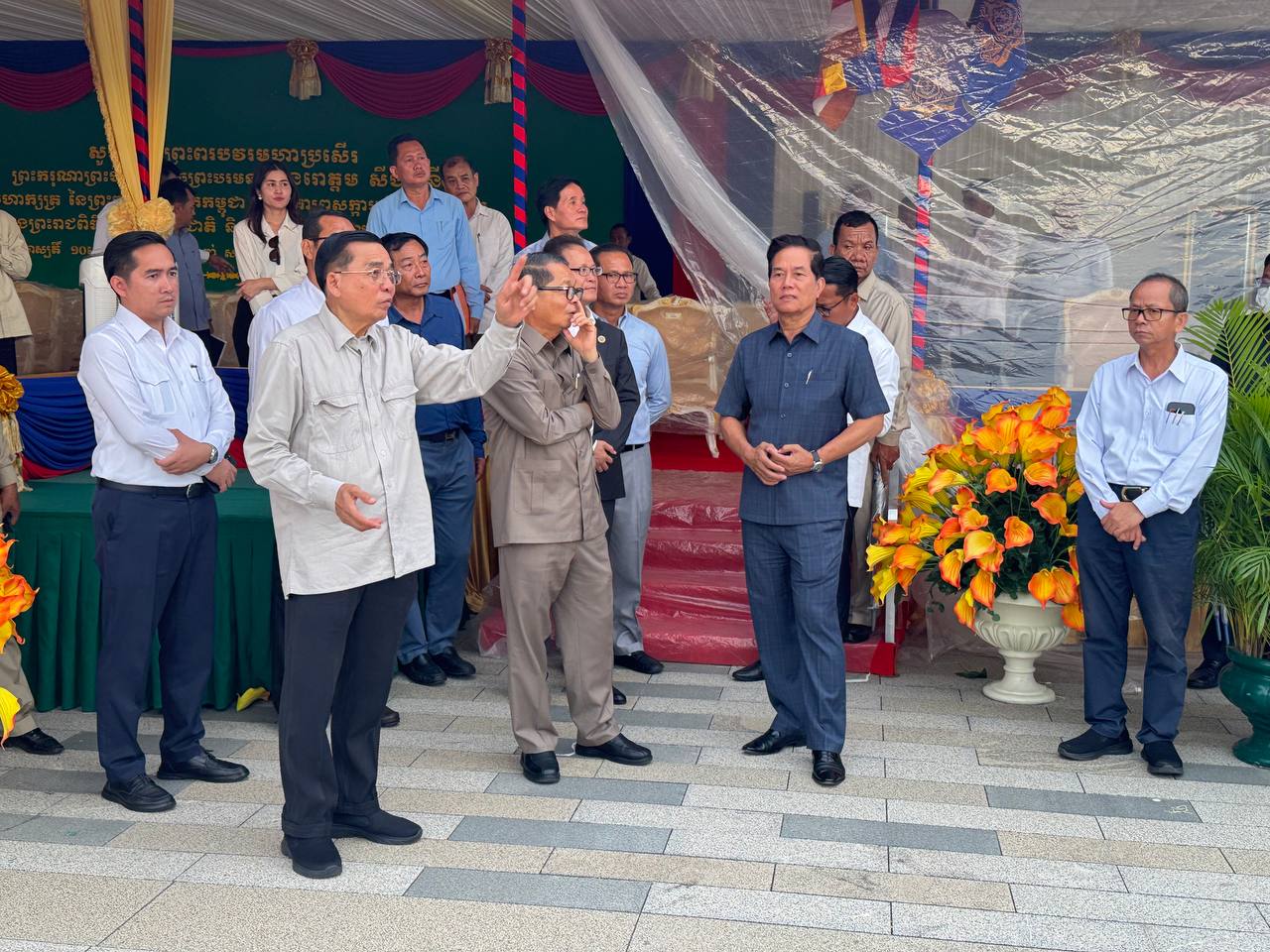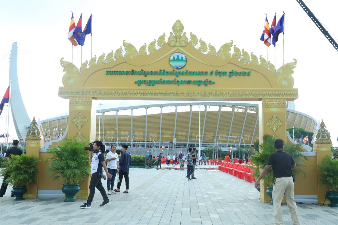 ភ្នំពេញ៖ឯកឧត្ដមឃួង ស្រេង អភិបាលនៃគណៈអភិបាលរាជធានីភ្នំពេញនារសៀលថ្ងៃទី០៤ មិថុនានេះបានអញ្ជើញអមដំណើរ សម្តេចមហាមន្ត្រី គុយ សុផល ឧបនាយករដ្ឋមន្រ្តី និងជារដ្ឋមន្ត្រីក្រសួងព្រះបរមរាជវាំងចុះពិនិត្យទីតាំងនៅពហុកីឡាដ្ឋាន មរតជាតិតេជោ ដែលមានទីតាំងស្ថិតនៅភូមិព្រែកតារ័ត្ន សង្កាត់ព្រែកតាសេក ខណ្ឌជ្រោយចង្វារ រាជធានីភ្នំពេញ ដើម្បីធ្វើយ៉ាងណារក្សាឱ្យបាននូវសន្តិសុខ សុវត្ថិភាព អនាម័យ បរិស្ថានល្អប្រសើរក្នុងព្រះរាជពិធីទិវាបរិស្ថានជាតិ និងបរិស្ថានពិភពលោក នាថ្ងៃទី០៥ ខែមិថុនា ឆ្នាំ២០២៥ស្អែកនេះ ក្រោមព្រះរាជាធិបតីភាពដ៏ខ្ពង់ខ្ពស់បំផុត ព្រះករុណាព្រះបាទសម្តេច ព្រះបរមនាថ នរោត្តម សីហមុនី ព្រះមហាក្សត្រ នៃព្រះរាជាណាចក្រកម្ពុជា។