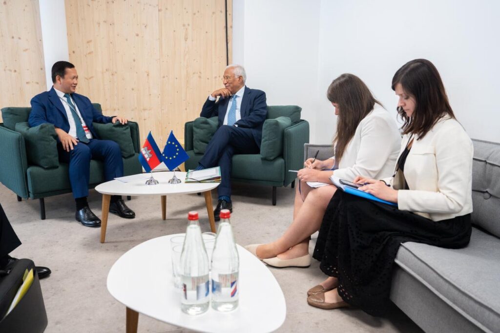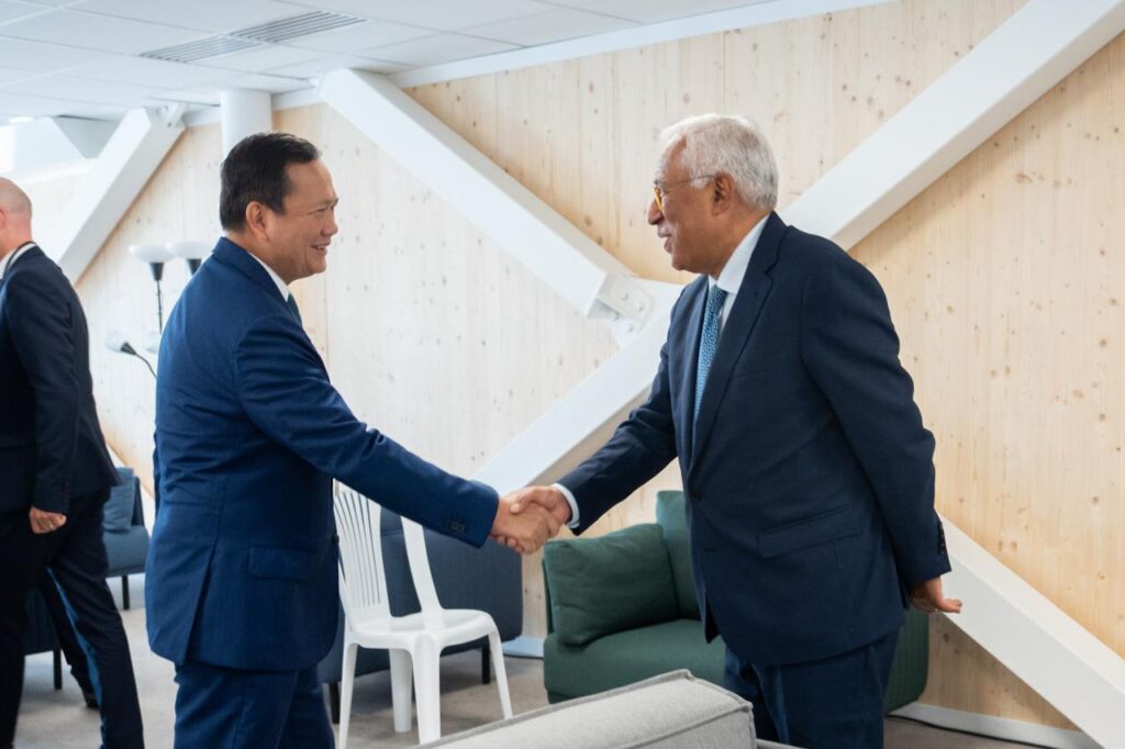 ក្រុងនីស, បារាំង៖ក្នុងឱកាសអញ្ជើញចូលរួមសន្និសីទអង្គការសហប្រជា ជាតិ ស្តីពី មហាសមុទ្រលើកទី៣ នៅទីក្រុងនីស ប្រទេសបារាំង នាព្រឹកថ្ងៃចន្ទ ទី៩ ខែមិថុនា ឆ្នាំ២០២៥នេះ សម្តេចមហាបវរធិបតី ហ៊ុន ម៉ាណែត នាយករដ្ឋមន្ត្រីកម្ពុជា បាន ជួប សម្តែងការគួរសម និងពិភាក្សាការងារជាមួយលោក António Costa ប្រធានក្រុមប្រឹក្សាអឺរ៉ុប៕