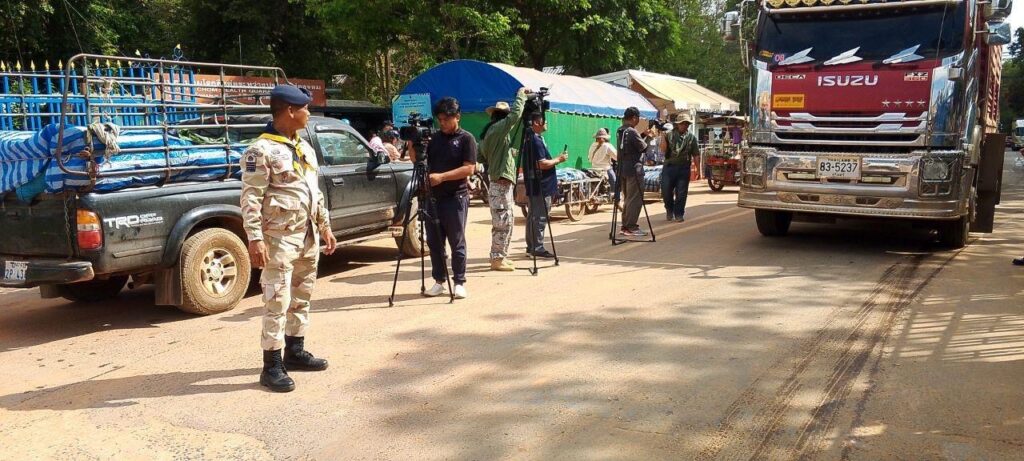 ឧត្តរមានជ័យ៖កម្លាំងសមត្ថកិច្ចប្រចាំការនៅច្រកទ្វារព្រំដែនអូរស្មាច់ និងច្រកទ្វារព្រំដែនជាំ ក្នុងខេត្តឧត្តរមានជ័យ បន្ដត្រួតពិនិត្យ និងបិទខ្ទប់ការនាំចូលបន្លែ ផ្លែឈើគ្រប់ប្រភេទរបស់ថៃ តាមបទបញ្ជារបស់រាជរដ្ឋាភិបាលកម្ពុជា ដែលឆ្លើយតបចំពោះការប្រមាថ និងគំរាមកំហែងពីក្រុមយោធាថៃ ក្រោយភាពតានតឹងដាក់គ្នាលើបញ្ហាព្រំដែន។