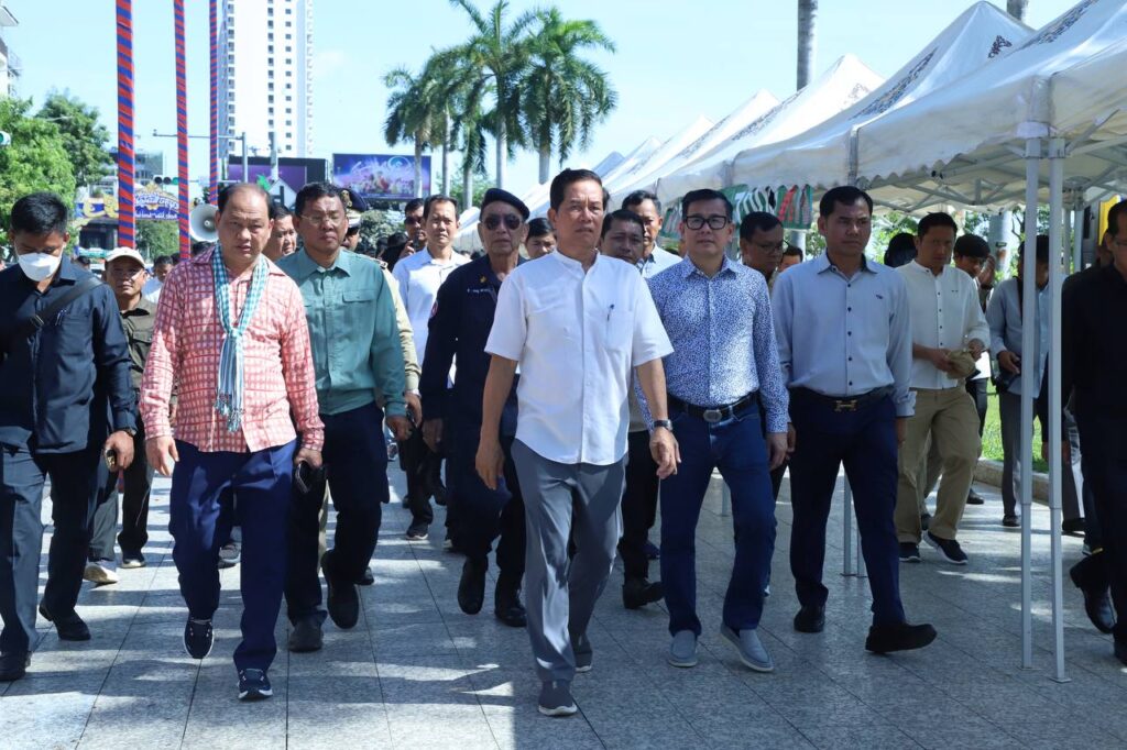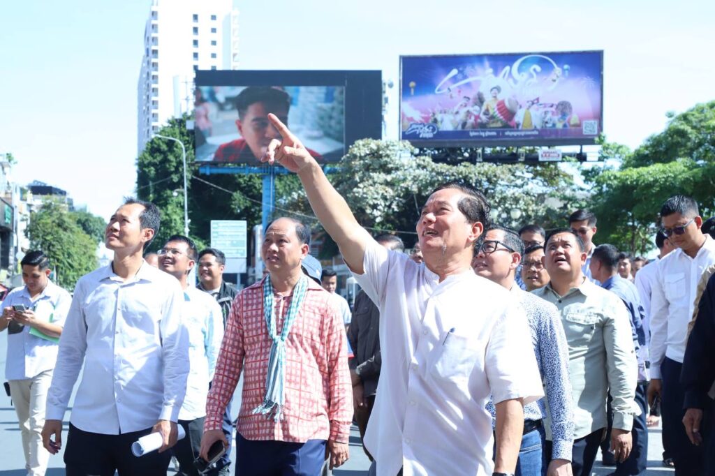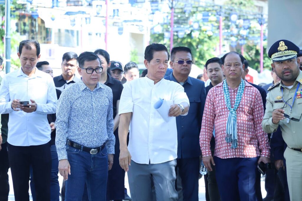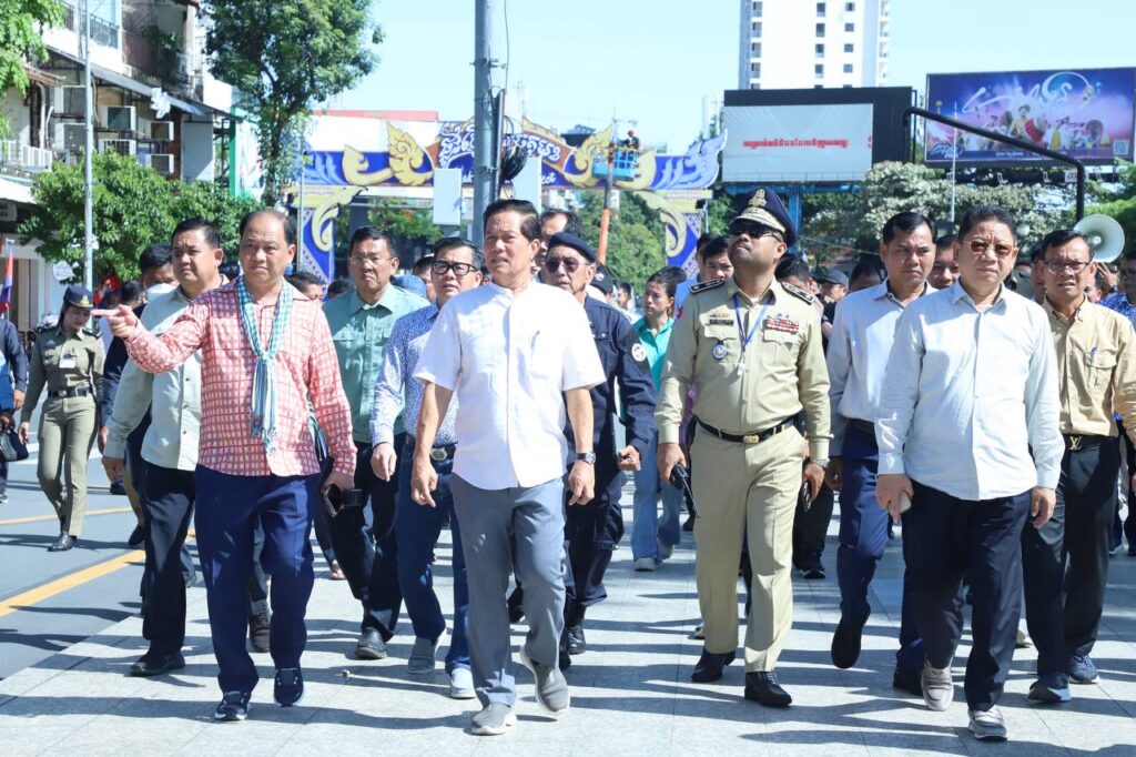 សន្តិសុខ សណ្តាប់ធ្នាប់របៀបរៀបរយនិងបរិស្ថានល្អប្រសើរ និងសាកសមនឹងការផ្ដល់កិត្តិយសដ៏ខ្ពង់ខ្ពស់ពីសំណាក់សម្ដេចធិបតីនិងលោកជំទាវបណ្ឌិតដល់រដ្ឋបាលរាជធានីភ្នំពេញអញ្ជើញមកកាត់ខ្សែបូបើកដំណើរការផ្លូវថ្មើរជើងចតុមុខ ឯកឧត្ដមឃួង ស្រេង អភិបាលនៃគណៈរាជធានីភ្នំពេញនិងលោកជំទាវនាព្រឹកថ្ងៃទី២១ ខែមិថុនា ឆ្នាំ២០២៥នេះបានដឹកនាំមន្ត្រីជំនាញនិងអាជ្ញាធរចុះពិនិត្យទីតាំងប្រារព្វពិធីនិងដើរពិនិត្យផ្លូវថ្មើរជើងចតុមុខនេះ ដោយចាប់ផ្តើមដើរថ្មើជើងចេញពីផ្សាររាត្រីរហូតដល់មុខព្រះបរមរាជវាំង។