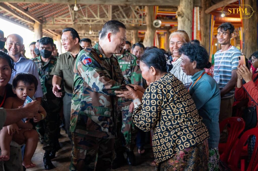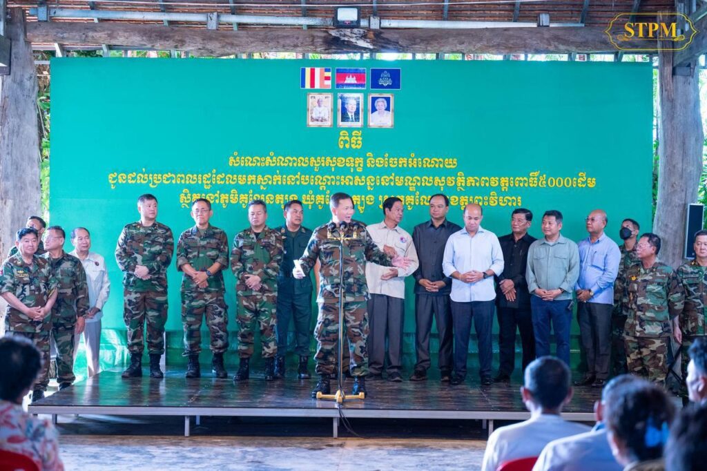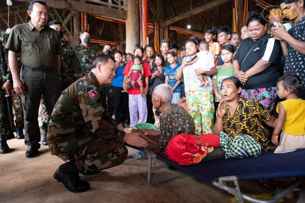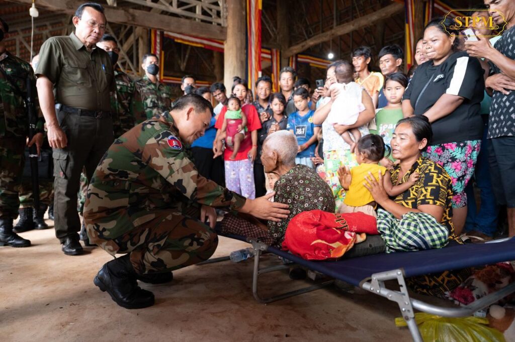 សម្តេចបវរធិបតី ហ៊ុន ម៉ាណែត ស្លៀកពាក់ជាយោធាចុះជួបសួរសុខទុក្ខនិងពិនិត្យស្ថានភាពរស់នៅបណ្តោះអាសន្នរបស់ពលរដ្ឋជាង១ពាន់គ្រួសារ ដែលបានជម្លៀសដោយស្ម័គ្រចិត្តមកកាន់មណ្ឌលសុវត្ថិភាព នៅខេត្តព្រះវិហារ