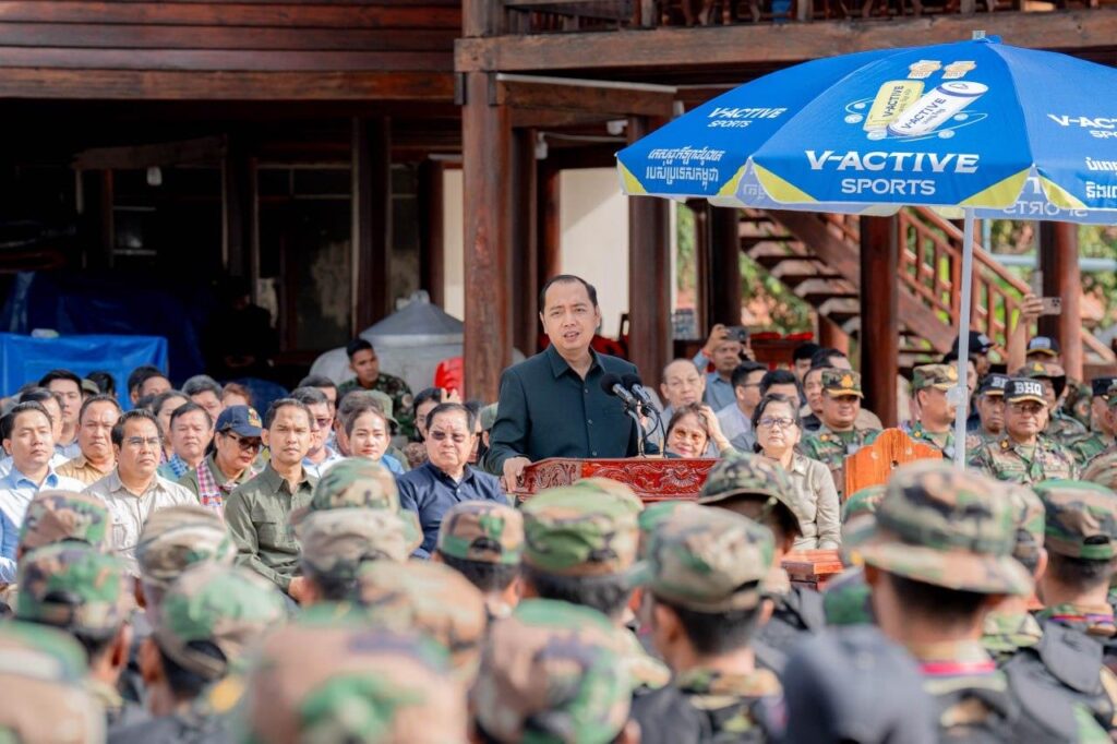 ឯកឧត្ដមរដ្ឋមន្ត្រី បានបន្ថែមថា ប្រទេសកម្ពុជា ក្រោមការដឹកនាំរបស់សម្ដេចបវរធិបតី ហ៊ុន ម៉ាណែត គឺជាបង្គោលដ៏រឹងមាំ ឈរជាមួយកងទ័ពនៅជួរមុខដ៏មានភាពអង់អាចក្លាហាន ការរួមគ្នាសាមគ្គីភាពជាធ្លុងមួយប្រឆាំងនឹងជនឈ្លានពានទាំងឡាយ។ ដូច្នេះ បងប្អូនកងទ័ព ពិតជាមានកម្លាំងចិត្ដ ពីព្រោះមានរាជរដ្ឋាភិបាល និងប្រជាពលរដ្ឋឈរពីក្រោយជាបង្អែកដ៏រឹងមាំផ្ដល់នូវការគាំពារ ក្នុងបុព្វហេតុជាតិមាតុភូមិកម្ពុជា។