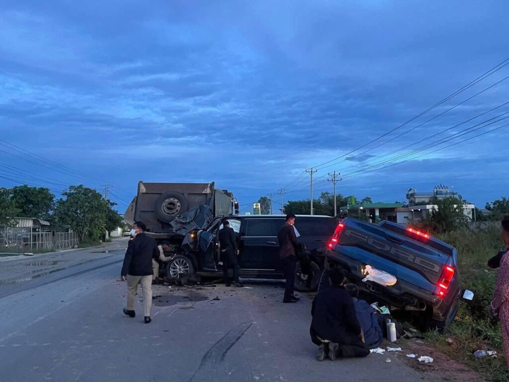 ព្រៃវែង៖ មានករណីគ្រោះថ្នាក់ចរាចរណ៍រវាងរថយន្ត០៣គ្រឿងបុកបន្តកន្ទុយគ្នា បណ្ដាល