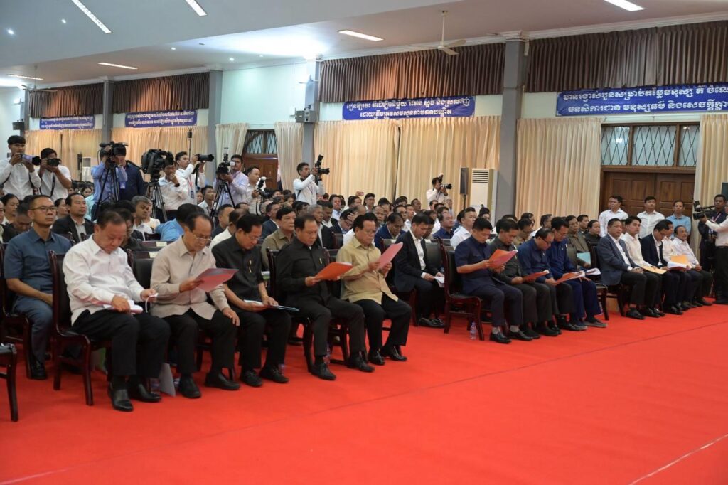 គួរឱ្យដឹងថា ក្រុមប្រឹក្សាធម្មនុញ្ញ នាថ្ងៃទី០២ ខែកក្កដា ឆ្នាំ២០២៥ បានបើកកិច្ចប្រជុំពេញអង្គក្រោមអធិបតីភាពលោក ហ៉ី សោភា ប្រធានក្រុមប្រឹក្សាធម្មនុញ្ញ ដើម្បីពិនិត្យ ពិភាក្សា និងរៀបចំសេចក្តីក្រាបបង្គំទូលថ្វាយមតិចំពោះព្រះរាជសារចុះថ្ងៃទី៣០ ខែមិថុនា ឆ្នាំ២០២៥ របស់ព្រះករុណា ព្រះបាទសម្តេច ព្រះបរមនាថ នរោត្តម សីហមុនី ព្រះមហាក្សត្រកម្ពុជា ជាទីគោរពសក្ការៈដ៏ខ្ពង់ខ្ពស់បំផុត ទ្រង់ពិគ្រោះ មតិក្រុមប្រឹក្សាធម្មនុញ្ញ លើសេចក្តីស្នើសុំធ្វើវិសោធនកម្មមាត្រា៣៣ នៃរដ្ឋធម្មនុញ្ញកម្ពុជា។