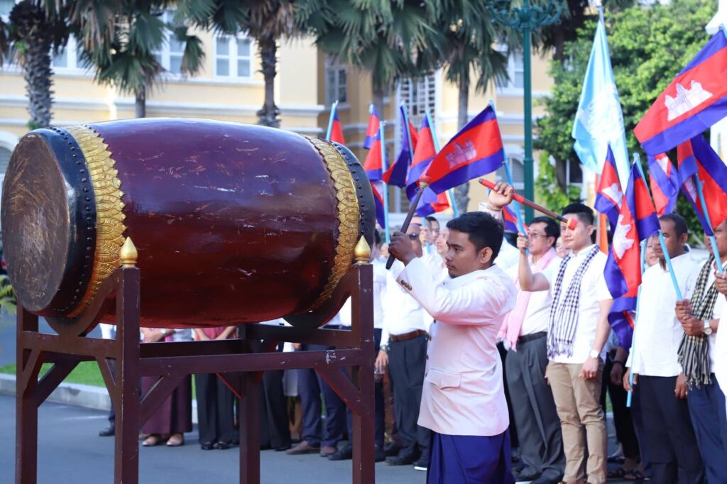 មុននឹងចាប់ផ្តើមពិធីទូងស្គរ ថ្នាក់ដឹកនាំ និងមន្ត្រីរាជការទាំងអស់នៃរដ្ឋបាលរាជធានីភ្នំពេញ បានច្រៀងចម្រៀងបទគោរពទង់ជាតិ បទពង្សសាវតាខ្មែរនិងធ្វើពិធីស្មិងស្មាធិ៍គោរពវិញ្ញាណក្ខន្ធដល់វរះជនស្នេហាជាតិគ្រប់ជំនាន់និងជនរងគ្រោះដែលបានបាត់បង់ជីវិតក្នុងរបបប្រល័យពូជសាសន៍ ប៉ុល ពត។