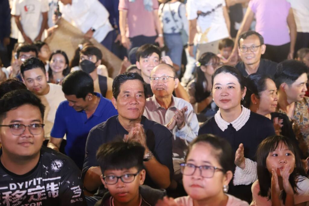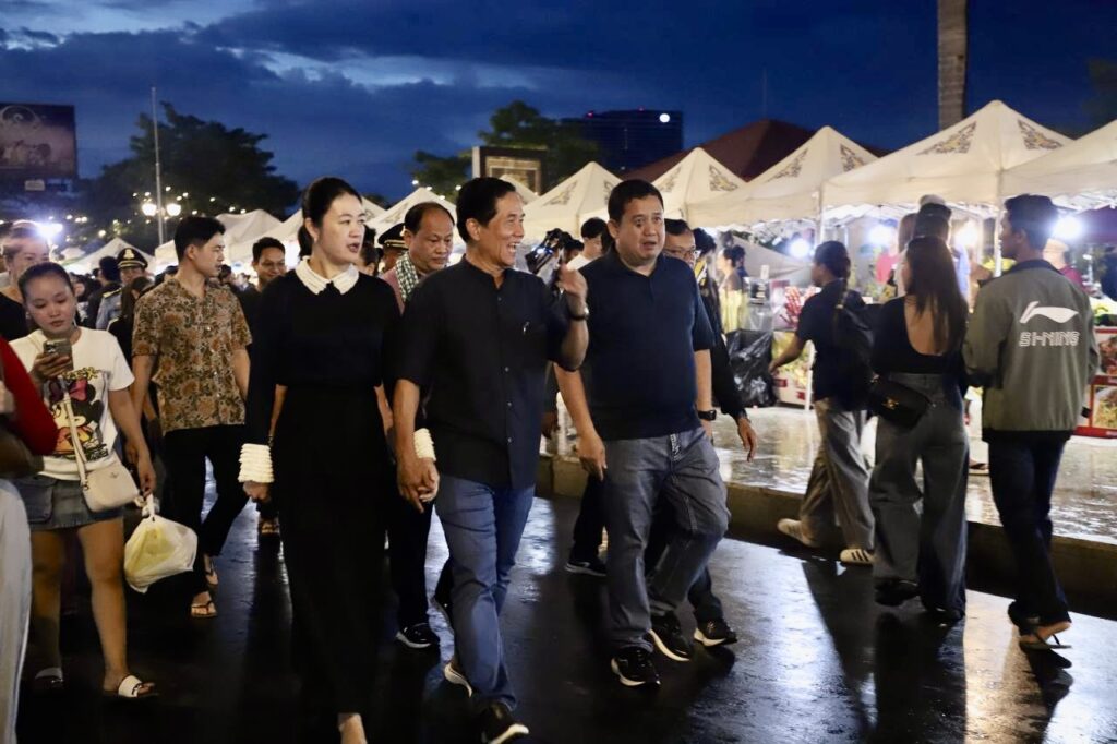 ភ្នំពេញ៖នៅផ្លូវថ្មើរជើង (Walk Street) កាន់តែល្បីល្បាញខ្លាំងណាស់នៅសប្ដាហ៌ទី២៣នេះមានការសម្ដែងល្ខោនបាសាក់រឿង «តេជោមាស តេជោយ៉ត» ធ្វើឱ្យប្រជាពលរដ្ឋយ៉ាងច្រើនកុះករ នាំគ្នាទស្សនាទោះបីនៅថ្ងៃអាទិត្យនេះមានភ្លៀងរលឹមយ៉ាងណាក្ដីតែតំណក់ទឹកភ្លៀងមិនបានរារាំងជាពលរដ្ឋមកលេងកំសាន្តនៅផ្លូវថ្មេីរជេីងនោះទេ។