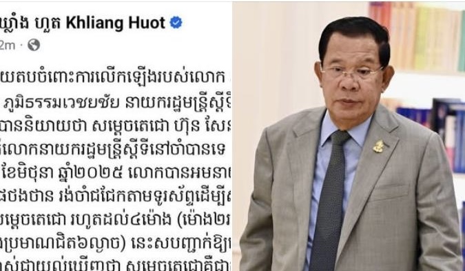 សម្តេចតេជោ ហ៊ុន សែន បានបង្ហោះសារនៅលើបណ្តាញសង្គមនៅថ្ងៃនេះជាមួយខ្លឹមសារទាំងស្រុងដូចខាងក្រោម៖មុននេះលោក ឃ្លាំង ហួត បានឆ្លើយតបជាមួយនាយករដ្ឋមន្ត្រីស្តីទី និងជាអតីតរដ្ឋមន្ត្រីក្រសួងការពារជាតិថៃ ដែលបានវាយប្រហារចំពោះខ្ញុំ។