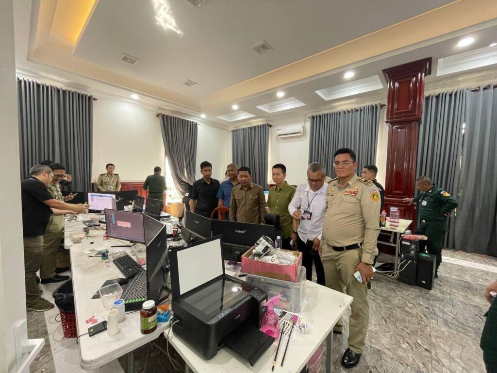 ភ្នំពេញ៖នៅថ្ងៃទី១៨ ខែកក្កដា ឆ្នាំ២០២៥នេះ កម្លាំងគណៈបញ្ជាការឯកភាពរដ្ឋបាលរាជធានីភ្នំពេញ ចុះបង្ក្រាបទីតាំងសង្ស័យមានការលួចលាក់បង្កប់បទល្មើស Online Scams ចំនួន២ទីតាំង ដោយទី១ ស្ថិតនៅក្នុង ផ្ទះវីឡា លេខ១០៥១ ផ្លូវបេតុង ភូមិច្រេះ សង្កាត់គោកឃ្លាង និងទី២ នៅក្នុងអគារអត់នាមករណ៍ ផ្លូវបេតុង ភូមិទំនប់ សង្កាត់ភ្នំពេញថ្មី ខណ្ឌសែនសុខ រាធានីភ្នំពេញ។
