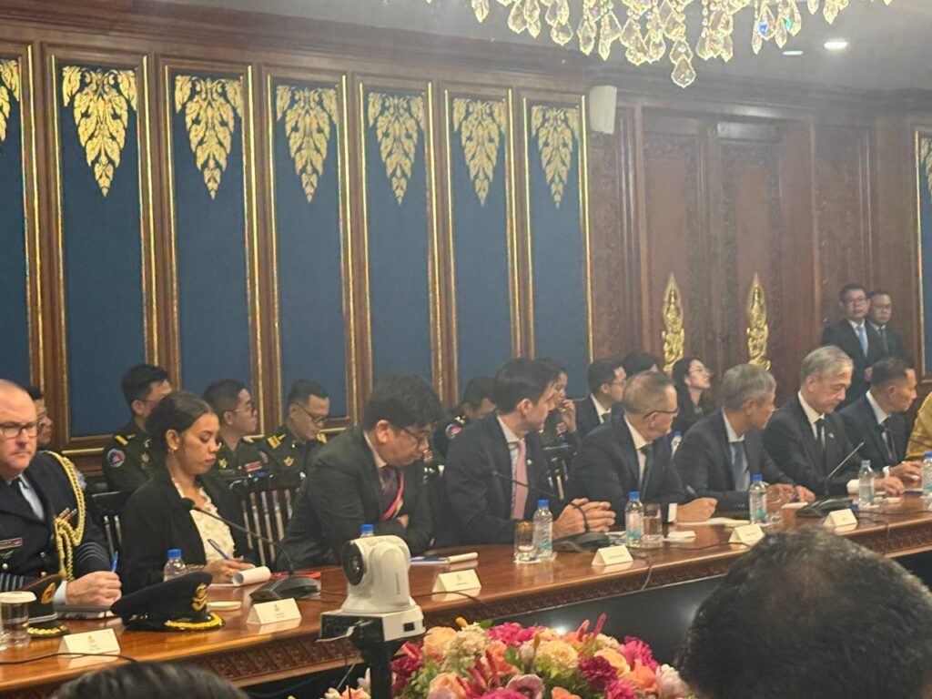 ភ្នំពេញ៖ក្រោយផ្ទុះអាវុធនៅបណ្ដោយព្រំដែនកម្ពុជា-ថៃ ដែលបង្កដោយទាហានថៃនៅចំណុចប្រាសាទតាមាន់ធំ កាលពីព្រឹកថ្ងៃទី២៤ ខែកក្កដា ឆ្នាំ២០២៥, ព្រឹកថ្ងៃទី២៥កក្ដដា២០២៥នេះ ក្រសួងការបរទេស និងសហប្រតិបត្តិការអន្តរជាតិ ឧបនាយករដ្ឋមន្ត្រីរដ្ឋមន្ត្រី ប្រាក់ សុខុន បានបើកកិច្ចប្រជុំបន្ទាន់ជួបជាមួយបណ្ដាទូតទាំងអស់ក្នុងប្រទេសកម្ពុជា ដើម្បីពន្យល់លម្អិតពីស្ថានភាពជម្លោះប្រដាប់អាវុធនៅបណ្ដោយព្រំដែនកម្ពុជា-ថៃ៕