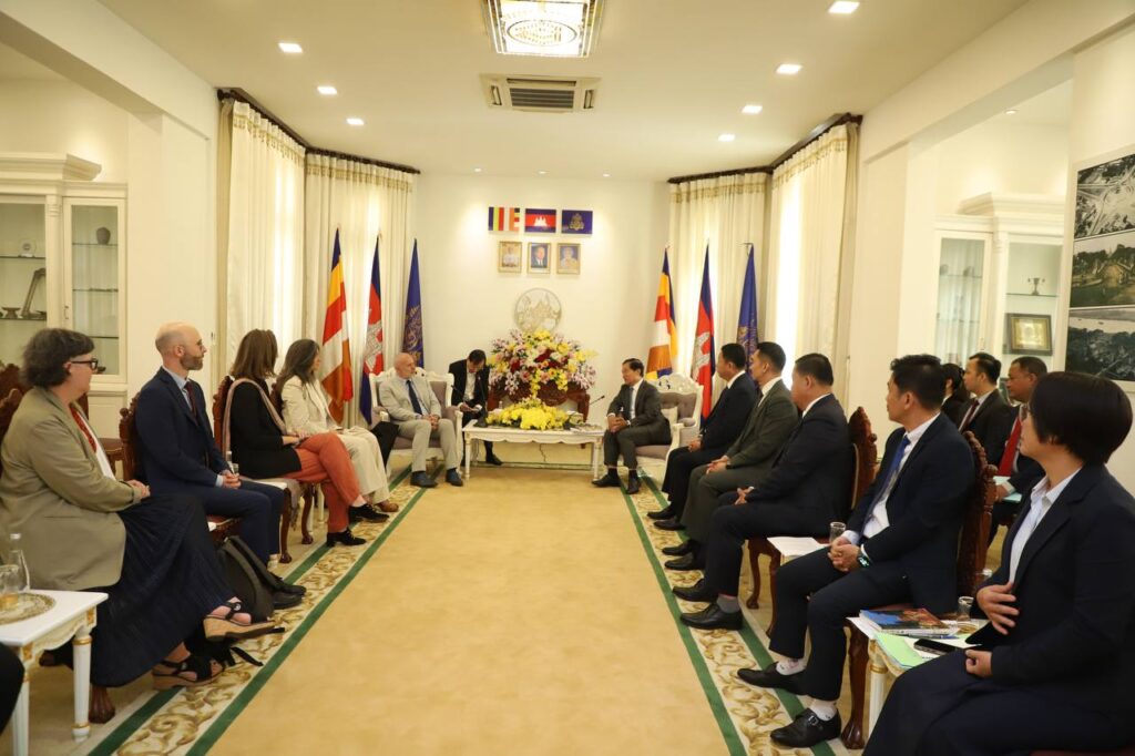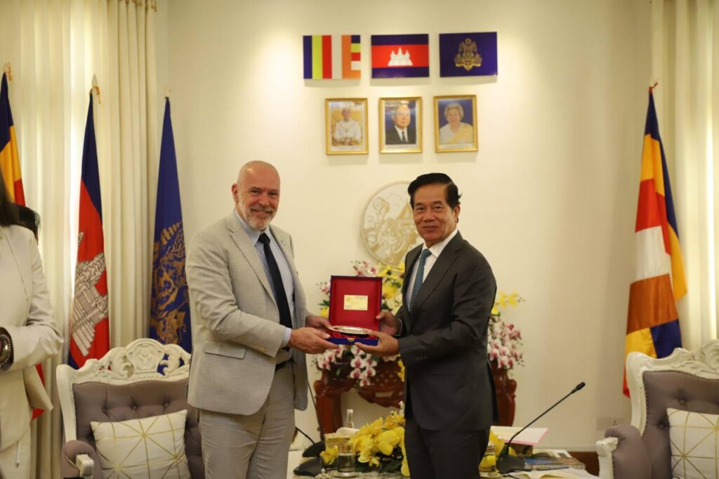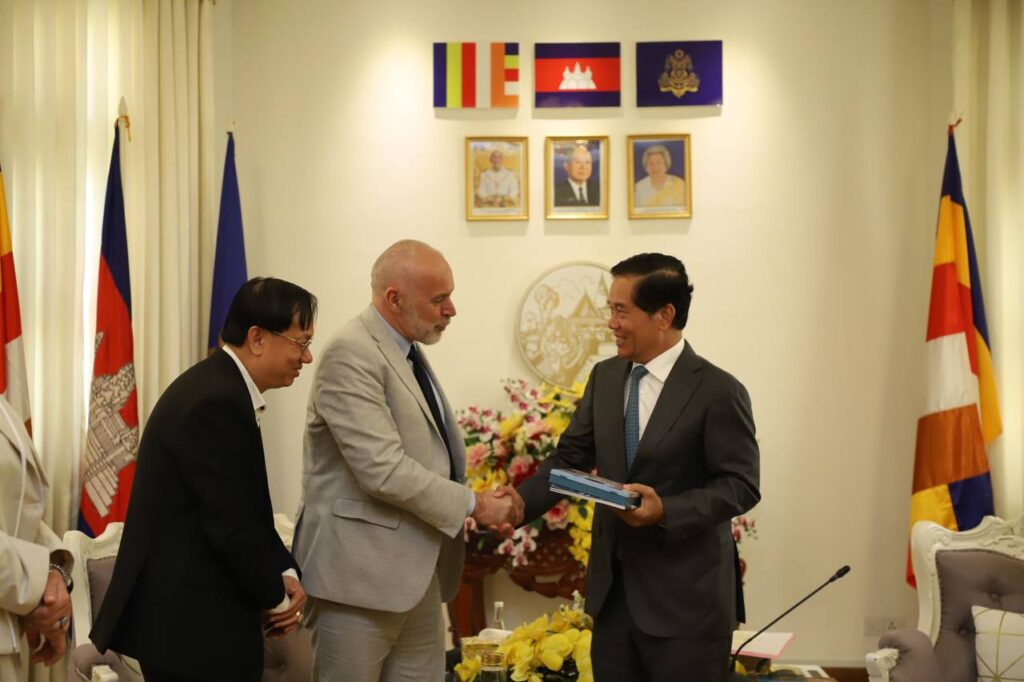 ភ្នំពេញ៖នាព្រឹកថ្ងៃទី២៥កក្កដាឆ្នាំ២០២៥នេះ ឯកឧត្ដម ឃួង ស្រេង អភិបាល នៃគណៈអភិបាលរាជធានីភ្នំពេញបានជួបសម្តែងការគួរសមនិងពិភាក្សាការងារ ជាមួយលោក Frédéric VALLIER អគ្គប្រតិភូនៃសមាគមអន្តរជាតិអភិបាលក្រុងប្រេីប្រាស់ភាសាបារាំង AIMF នៅសាលារាជធានីភ្នំពេញ។