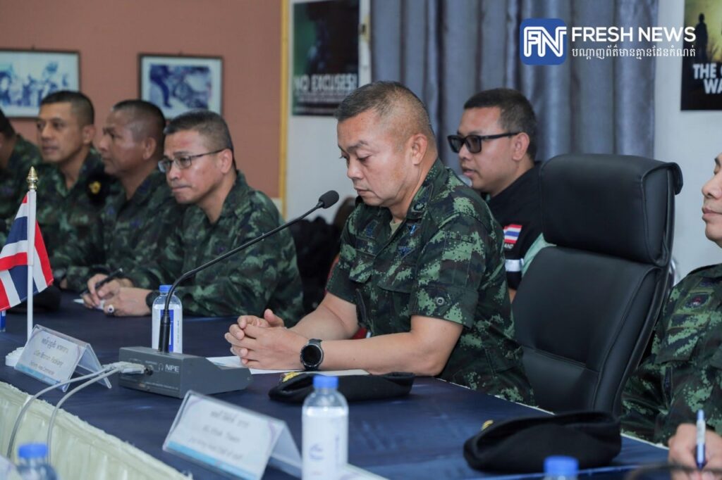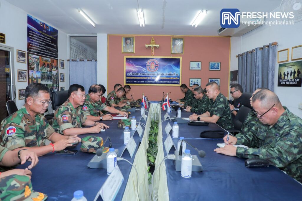 ឧត្តរមានជ័យ៖កិច្ចប្រជុំរវាងឧត្តមសេនីយ៍ឯក ពៅ ហេង មេបញ្ជាការយោធភូមិភាគទី៤ ជាមួយមេបញ្ជាការយោធភូមិភាគទី២ថៃ លោកឧត្តមសេនីយ៍ ប៊ុនស៊ីង ផាកខ្លាង (Gen. Boonsin Padklang) នៅច្រកទ្វារអន្តរជាតិអូស្មាច់ ខេត្តឧត្តរមានជ័យ បានបញ្ចប់ហើយ នៅវេលាម៉ោងប្រមាណ១១ព្រឹកថ្ងៃទី២៩ ខែកក្កដា ឆ្នាំ២០២៥ ដោយលទ្ធផលដូចខាងក្រោម៖