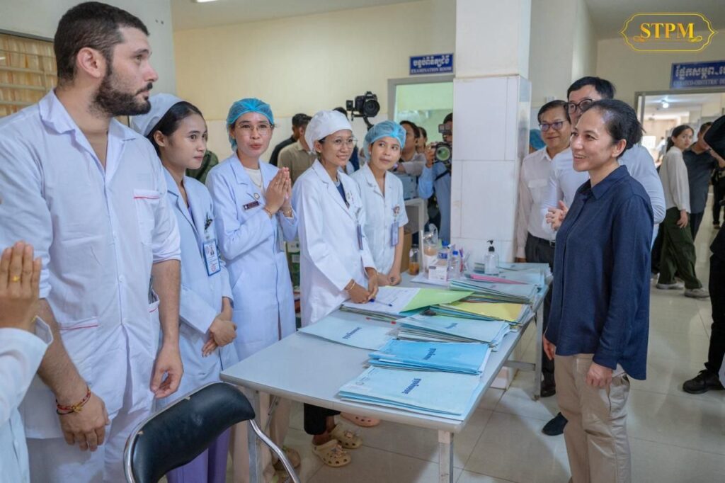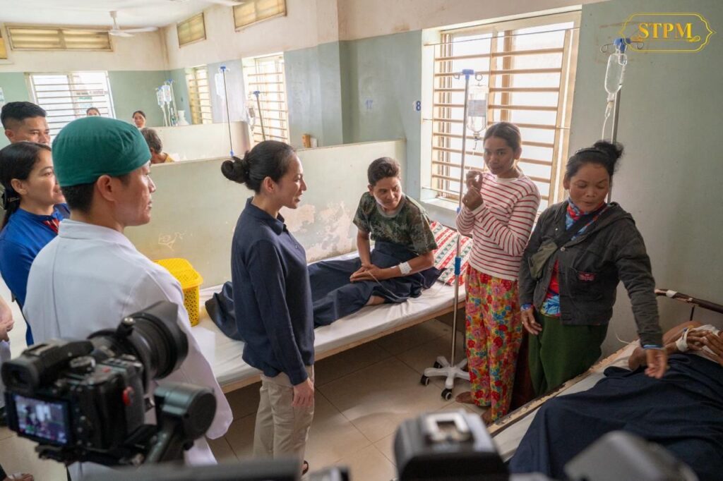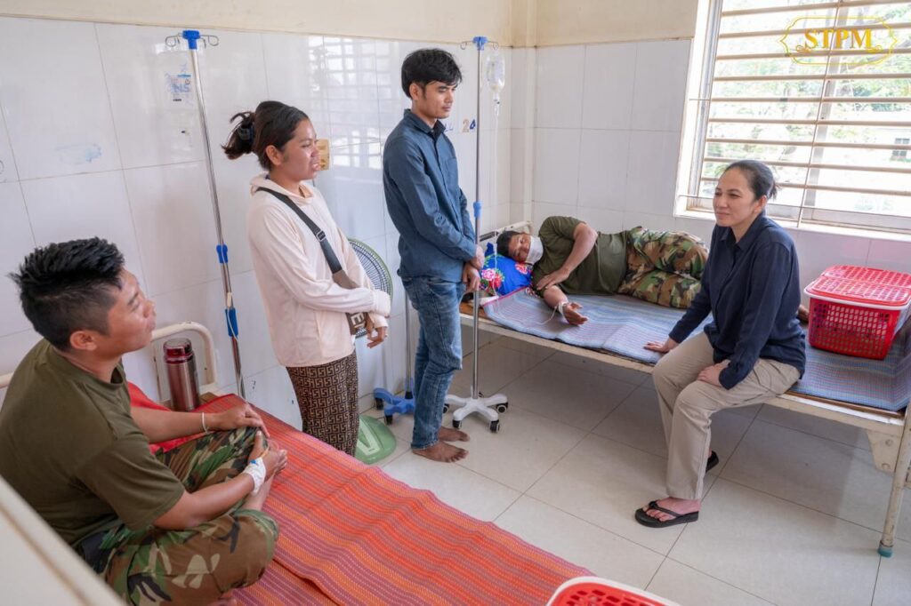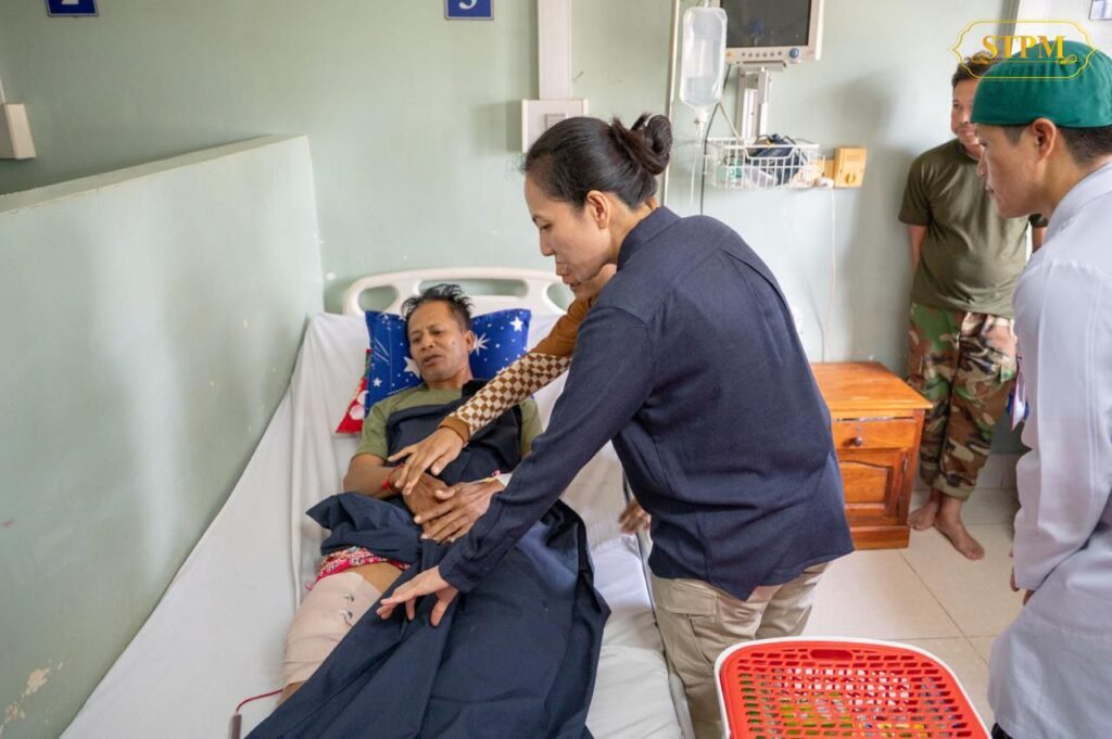 លោកជំទាវបណ្ឌិតពេជចន្ទមុន្នីហ៊ុនម៉ាណែតបន្តចុះជួបសួរសុខទុក្ខបងប្អូនយុទ្ធជនដែលរងរបួសអំឡុងពេលជម្លោះព្រំដែនកម្ពុជា-ថៃនៅមន្ទីរពេទ្យបង្អែក១៦មករាខេត្តព្រះវិហារ