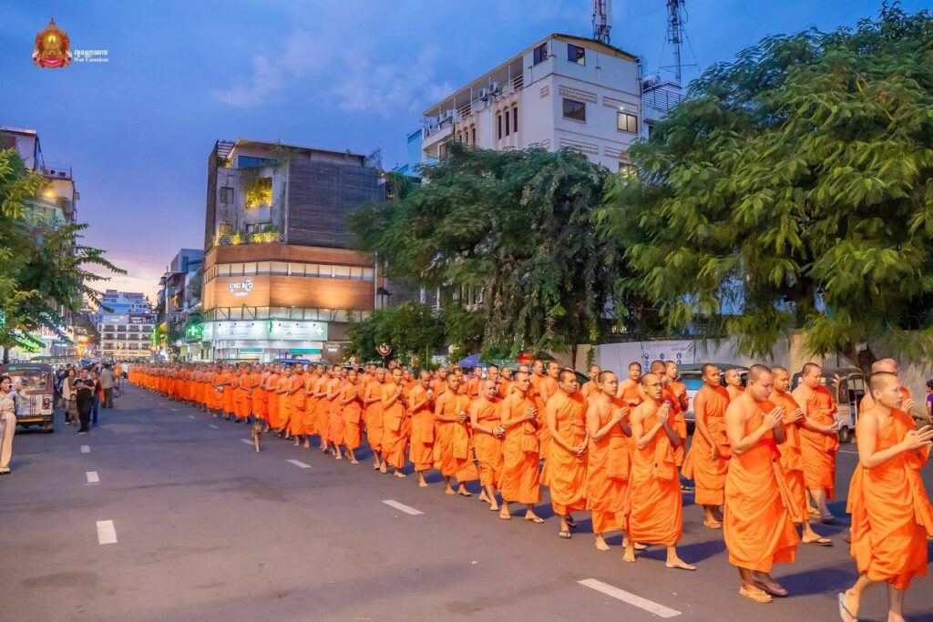 សម្ដេចព្រះមហាអរិយវង្សបណ្ឌិតយ៉នសេងយៀតនិមន្តដឹកនាំព្រះសង្ឃប្រមាណ៣៥០អង្គដង្ហែក្បួននៅតាមផ្លូវថ្មើរជើងឧទ្ទិសបុណ្យកុសលដល់កងទ័ពពលីនៅសមរភូមិនិងដឹងគុណសម្តេចតេជោហ៊ុនសែននិងសម្តេចធិបតីហ៊ុនម៉ាណែតចំពោះការស្វែងរកបទឈប់បាញ់