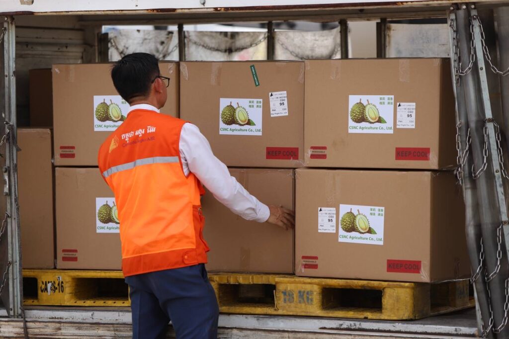 ភ្នំពេញ៖កម្ពុជា បានចាប់ផ្ដើមសាកល្បងនាំចេញផ្លែឈើទុរេន ជាលើកដំបូង ទៅកាន់ខេត្ដហឺណាន ប្រទេសចិន តាមរយៈជើងហោះហើរ របស់ក្រុមហ៊ុនអាកាសចរណ៍ជាតិកម្ពុជា (Air Cambodia) នៅរសៀលថ្ងៃទី៨ ខែសីហា ឆ្នាំ២០២៥នេះ។