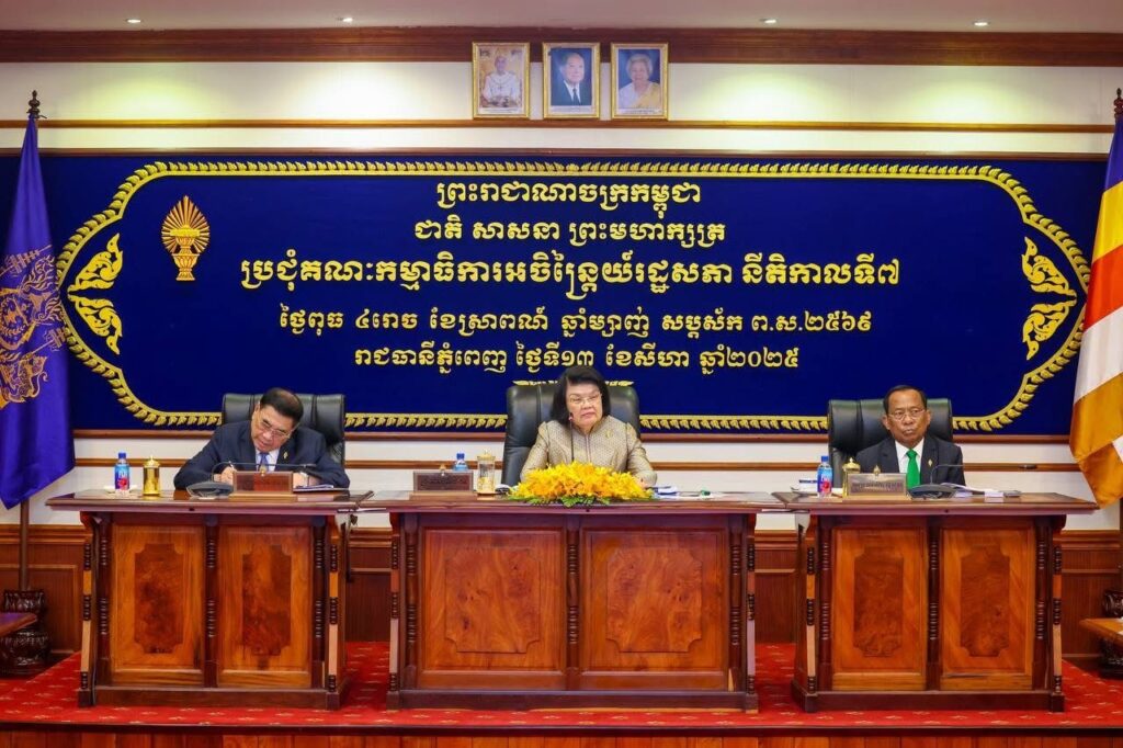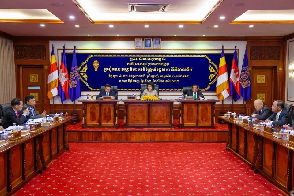 ភ្នំពេញ៖នៅព្រឹកថ្ងៃពុធទី១៣ ខែសីហា ឆ្នាំ២០២៥ សម្តេចមហារដ្ឋសភាធិការធិបតី ឃួន សុដារី ប្រធានរដ្ឋសភានៃព្រះរាជាណាចក្រកម្ពុជា បានអញ្ជើញដឹកនាំកិច្ចប្រជុំគណៈកម្មាធិការអចិន្រ្តៃយ៍រដ្ឋសភាដើម្បីពិនិត្យនិងអនុម័តលើសំណើ របស់រាជរដ្ឋាភិបាល ដែលបានស្នើសុំរដ្ឋសភា អនុម័តសេចក្តីព្រាងច្បាប់ចំនួនពីរ។