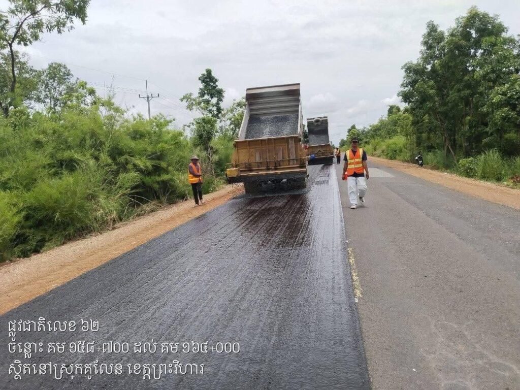 ព្រះវិហារ៖ក្រុមការងារនៃមន្ទីរសាធារណការ និងដឹកជញ្ជូន ខេត្តព្រះវិហារ បានបន្តសកម្មភាពចុះជួសជុលថែទាំផ្លូវជាតិលេខ៦២ ក្នុងភូមិសាស្ត្រខេត្តរបស់ខ្លួន។ ការជួសជុលជាប្រចាំនេះ គឺផ្តោតលើកំណាត់ផ្លូវដែលខូចខាត និងមានជង្ហុកសំបុកមាន់ ដើម្បីសម្រួលដល់ការធ្វើដំណើររបស់បងប្អូនប្រជាពលរដ្ឋ កាត់បន្ថយហានិភ័យនានា និងធ្វើឲ្យការដឹកជញ្ជូនទំនិញកាន់តែមានភាពរលូន និងចំណេញពេលវេលា។