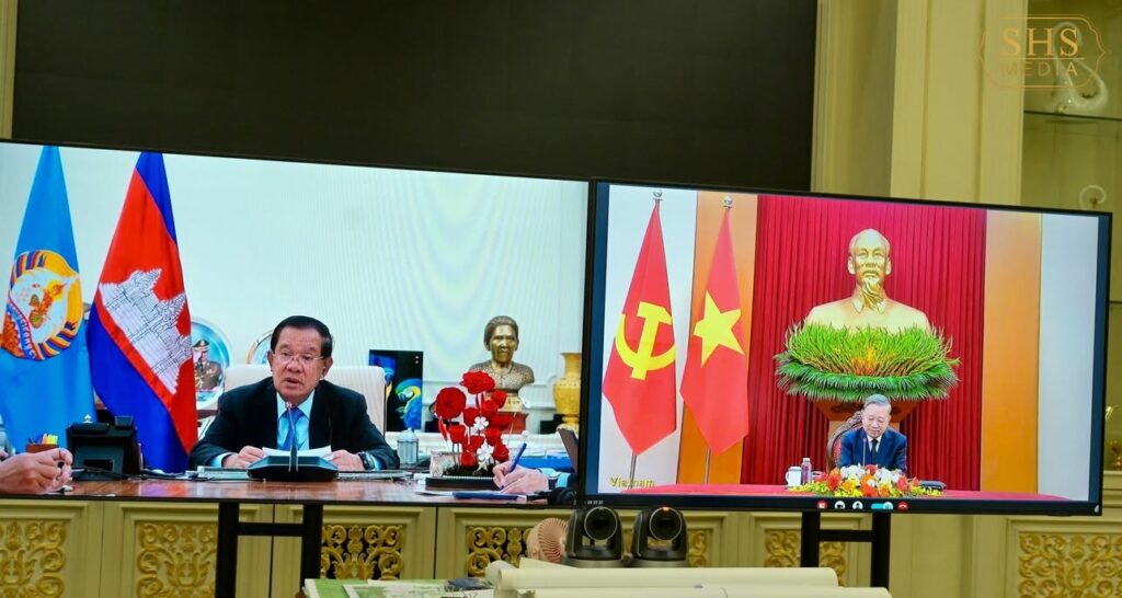 ភ្នំពេញ៖កាលពីរសៀលថ្ងៃទី១៤ ខែសីហា ឆ្នាំ២០២៥ សម្តេចអគ្គមហាសេនាបតីតេជោ ហ៊ុន សែន ប្រធានគណបក្សប្រជាជនកម្ពុជា បានអញ្ជើញជួបពិភាក្សាការងារជាមួយ ឯកឧត្តម តូ ឡឹម អគ្គលេខាធិការបក្សកុម្មុយនីស្តវៀតណាម តាមប្រព័ន្ធបញ្ជូនរូបភាព និងសំឡេង។