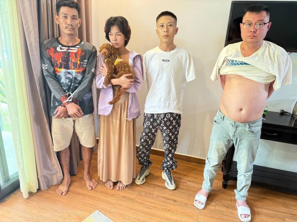 ជនសង្ស័យទាំង៤នាក់រួមមាន៖ ទី១៖ឈ្មោះ ZHU ZONG LIANG អាយុ៤១ឆ្នាំ, ទី២៖ឈ្មោះ YI MING XING អាយុ២៧ឆ្នាំ, ទី៣៖ឈ្មោះ សាន ស្រីនិ អាយុ២២ឆ្នាំ និងទី៤៖ ឈ្មោះ សួស សារ៉ាវី អាយុ២៨ឆ្នាំ។