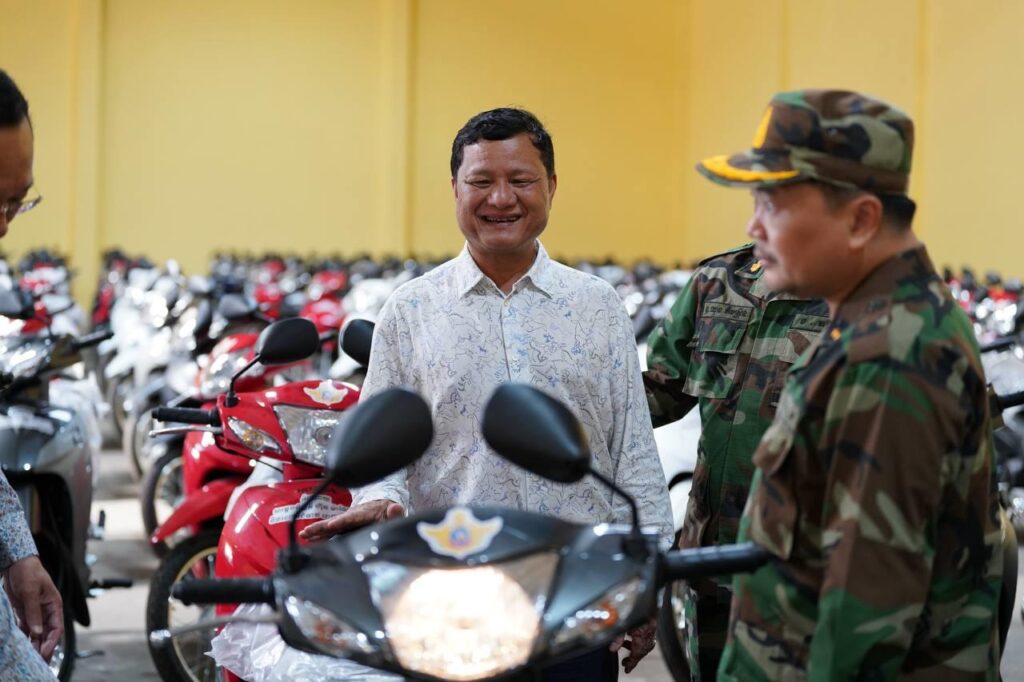 ភ្នំពេញ៖សម្តេចមហាបវរធិបតី ហ៊ុន ម៉ាណែត នាយករដ្ឋមន្ត្រីកម្ពុជា និងលោក ជំទាវ បណ្ឌិត ពេជ ចន្ទមុន្នី ហ៊ុនម៉ាណែត តាមរយៈលោកអ្នកឧកញ៉ា ទ្រី ភាព បេសក ជន ពិ សេស របស់សម្តេចតេជោ ហ៊ុន សែន ប្រធានព្រឹទ្ធសភាកម្ពុជា និងលោកជំទាវ ឧកញ៉ា គៀន ស្រីនា បានឧបត្ថម្ភម៉ូតូចំនួន ១ពាន់គ្រឿងជូនដល់កងទ័ពជួរមុខ ក៏ដូច ជាអង្គ ភាព ទ័ពប្រើប្រាស់តាមតម្រូវការចាំបាច់លើកិច្ចការពារជាតិ។