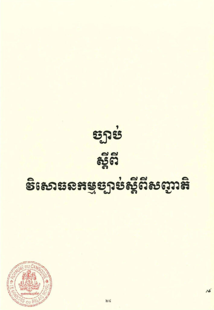 សូមបញ្ជាក់ថា ច្បាប់ស្តីពីវិសោធនកម្មច្បាប់ស្តីពីសញ្ជាតិ ត្រូវបានរដ្ឋសភាអនុម័តទាំងស្រុងកាលពីថ្ងៃទី២៥ ខែសីហា ឆ្នាំ២០២៥ នាសម័យប្រជុំរដ្ឋសភាលើកទី៤ នីតិកាលទី៧ ហើយត្រូវបានព្រឹទ្ធសភា ពិនិត្យចប់សព្វគ្រប់លើទម្រង់ និងគតិច្បាប់នេះទាំងស្រុងកាលពីថ្ងៃទី១ ខែកញ្ញា ឆ្នាំ២០២៥ នាសម័យប្រជុំព្រឹទ្ធសភាជាវិសាមញ្ញា នីតិកាលទី៥៕