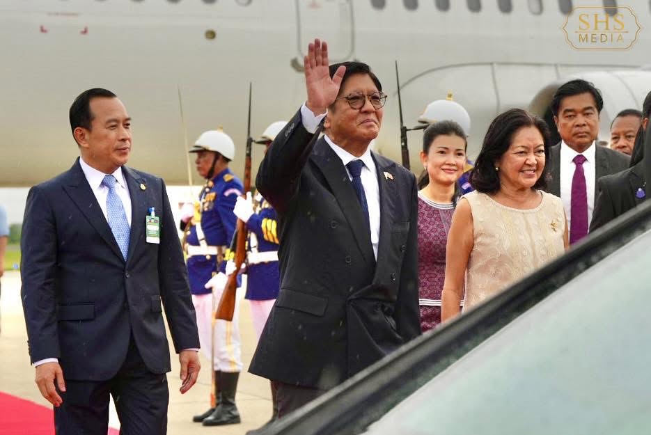 ភ្នំពេញ៖នៅរសៀលថ្ងៃអាទិត្យ ១៥កើត ខែភទ្របទ ឆ្នាំម្សាញ់ សប្តស័ក ពុទ្ធសករាជ ២៥៦៩ ត្រូវនឹងថ្ងៃទី៧ ខែកញ្ញា ឆ្នាំ២០២៥ នេះ ឯកឧត្តម Ferdinand Romualdez Marcos Jr. ប្រធានាធិបតីនៃសាធារណរដ្ឋហ្វីលីពីន និងលោកជំទាវ Louise Araneta-Marcos បានធ្វើដំណើរអញ្ជើញដល់អាកាសយានដ្ឋានអន្តរជាតិភ្នំពេញ ដើម្បីធ្វើទស្សនកិច្ចផ្លូវរដ្ឋនៅព្រះរាជាណាចក្រកម្ពុជា រយៈពេល ៣ថ្ងៃ ពីថ្ងៃទី៧ ដល់ថ្ងៃទី៩ ខែកញ្ញា ឆ្នាំ២០២៥ តបតាមការអញ្ជើញរបស់ ព្រះករុណា ព្រះបាទ សម្តេចព្រះបរមនាថ នរោត្តម សីហមុនី ព្រះមហាក្សត្រនៃព្រះរាជាណាចក្រកម្ពុជា ។