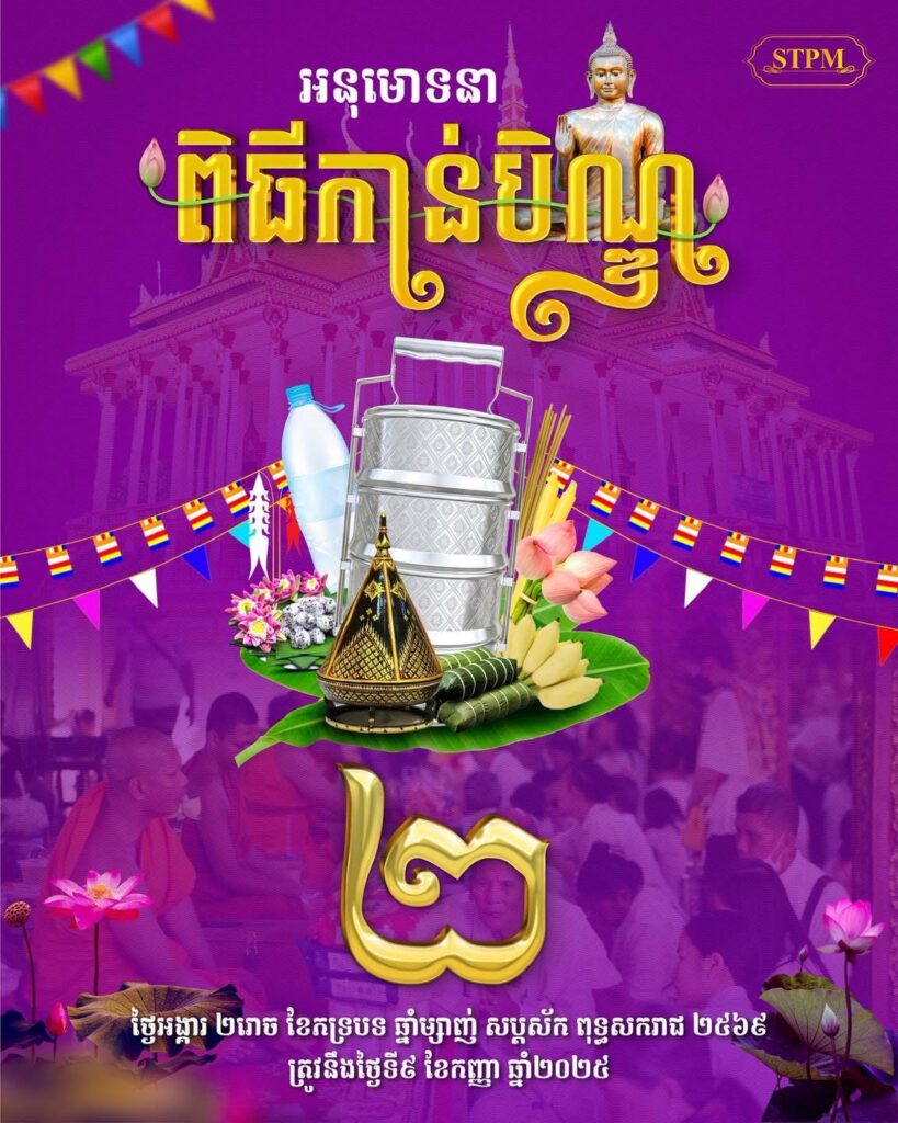 ពិធីបុណ្យកាន់បិណ្ឌ និងភ្ជុំបិណ្ឌឆ្នាំ២០២៥នេះ ប្រព្រឹត្តទៅចាប់ពីថ្ងៃ១រោច ដល់ថ្ងៃ ១៥រោច ខែភទ្របទ ត្រូវនឹងថ្ងៃទី៨ ដល់ថ្ងៃទី២៣ ខែកញ្ញា ឆ្នាំ២០២៥។