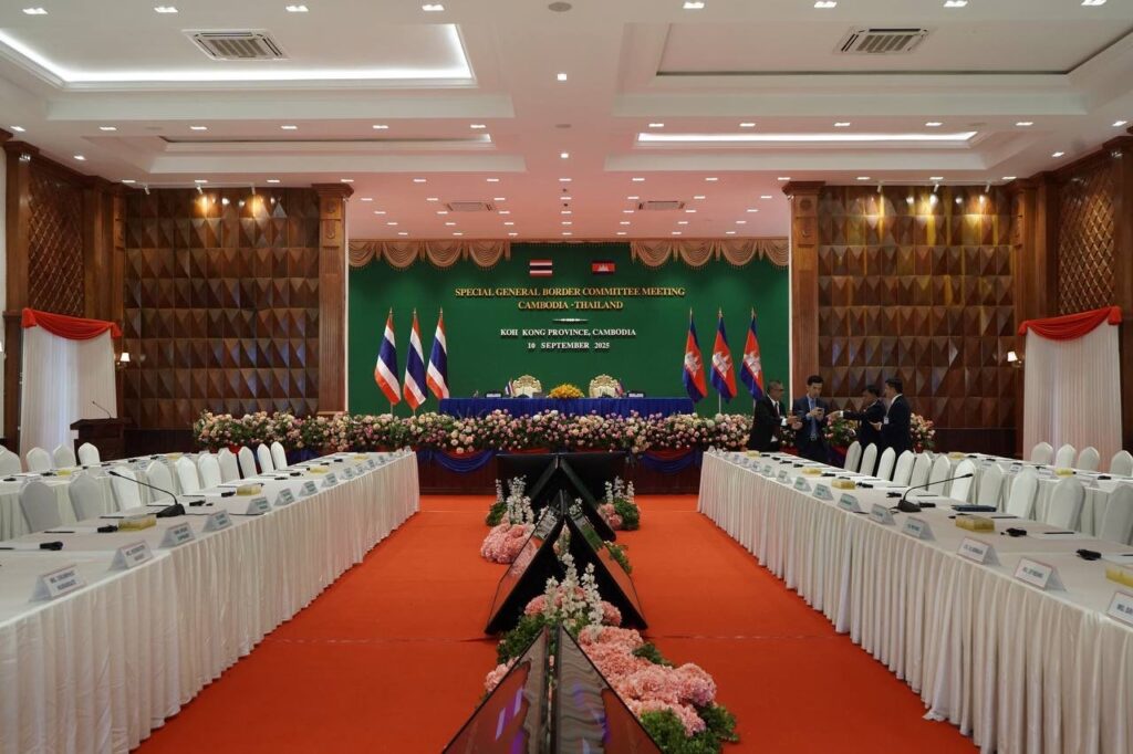 កោះកុង៖រដ្ឋមន្ត្រីការពារជាតិកម្ពុជា-ថៃ នឹងបើកកិច្ចប្រជុំពិសេស គណៈកម្មាធិការព្រំដែនទូទៅកម្ពុជា-ថៃ (Extraordinary GBC Meeting) ជាលើកទី២ នៅម៉ោង១០ព្រឹកថ្ងៃទី១០ ខែកញ្ញា ឆ្នាំ២០២៥នេះ នៅសាលមហោស្រព ខេត្តកោះកុង ដោយប្រទេសកម្ពុជាធ្វើជាម្ចាស់ផ្ទះ។
