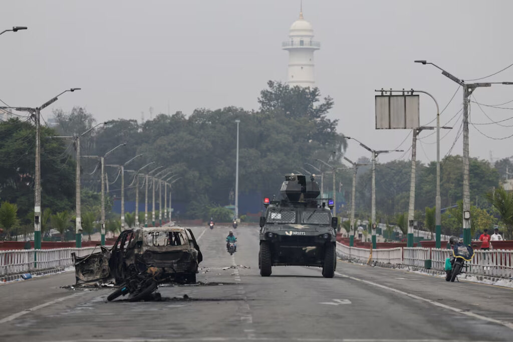 កដ្ឋមណ្ឌូ៖ទាហានប្រដាប់អាវុធនេប៉ាល់ កំពុងយាមកាមនៅសភាជាតិ ខណៈតាមដងផ្លូវមានសភាពស្ងប់ស្ងាត់ ដោយសារបម្រាមគោចរមិនកំណត់ពេល ក្នុងរដ្ឋធានី Kathmandu ត្រូវបានដាក់ចេញ ក្រោយការតវ៉ាប្រឆាំងអំពើពុករលួយ ប្រែក្លាយជាអំពើហិង្សារយៈពេលពីរថ្ងៃ និងដែលបានជំរុញឱ្យនាយករដ្ឋមន្ត្រីលោក K.P. Sharma Oli លាលែងពីតំណែង។ នេះបើយោងតាមការចេញផ្សាយដោយទីភ្នាក់ងារសារព័ត៌មាន Reuters នៅថ្ងៃពុធ ទី១០ ខែកញ្ញា ឆ្នាំ ២០២៥។