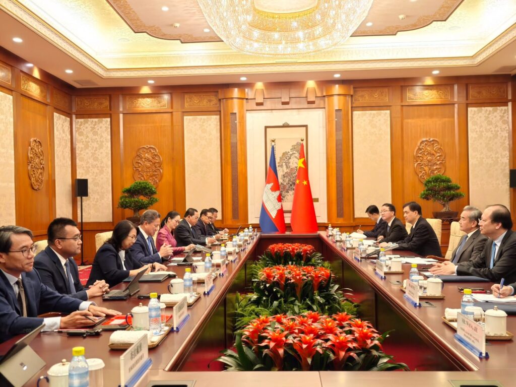 រដ្ឋធានីប៉េកាំង៖សាធារណរដ្ឋប្រជាមានិតចិន៖ នាថ្ងៃអង្គារ ទី១៦ ខែកញ្ញា ឆ្នាំ២០២៥ ឯកឧត្តម ស៊ុន ចាន់ថុល ឧបនាយករដ្ឋមន្ត្រី អនុប្រធានទី១ ក្រុមប្រឹក្សាអភិវឌ្ឍន៍កម្ពុជា និងជាសហប្រធានគណៈកម្មាធិការសម្របសម្រួលអន្តររដ្ឋាភិបាលកម្ពុជា-ចិន បានជួបពិភាក្សាការងារជាមួយ ឯកឧត្តម វ៉ាង យី (Wang Yi) សមាជិកការិយាល័យនយោបាយ, ប្រធានការិយាល័យគណៈកម្មការកិច្ចការបរទេសនៃគណៈកម្មាធិការមជ្ឈឹមបក្សកុម្មុយនីស្តចិន, និងជារដ្ឋមន្ត្រីការបរទេសចិន។ ក្នុងកិច្ចប្រជុំនេះមានការចូលរួមពីលោកជំទាវ សឿង រដ្ឋចាវី ឯកអគ្គរាជទូតកម្ពុជាប្រចាំសាធារណរដ្ឋប្រជាមានិតចិន, លោកជំទាវ ចម និម្មល រដ្ឋមន្រ្តីក្រសួងពាណិជ្ជកម្ម, ឯកឧត្តម ប៉េង ពោធិ៍នា រដ្ឋមន្ត្រីក្រសួងសាធារណការ និងដឹកជញ្ជូន, ឯកឧត្តម គង់ វិមាន អគ្គលេខាធិការនៃអគ្គលេខាធិការដ្ឋានក្រុមប្រឹក្សាអភិវឌ្ឍន៍កម្ពុជា, ឯកឧត្តម មាស សុខសេនសាន រដ្ឋលេខាធិការក្រសួងសេដ្ឋកិច្ចនិងហិរញ្ញវត្ថុ, ឯកឧត្តម ប្រាក់ ដាវីដ រដ្ឋលេខាធិការក្រសួងកសិកម្ម រុក្ខាប្រមាញ់ និងនេសាទ និងមន្ត្រីជំនាញរបស់កម្ពុជាជាច្រើនរូប។