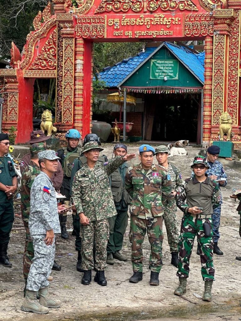 On Saturday Morning, 20 September 2025, the Ministry of National Defence of the Kingdom of Cambodia facilitated the visit of the Interim Observer Team (IOT), led by Malaysia, along with its members, in order to observe, verify, and report on the situation at Preah Vihear Temple, Preah Vihear Province, after the Ceasefire Agreement came into effect.