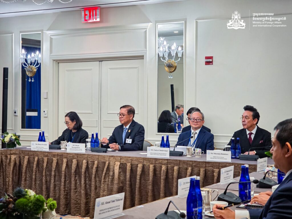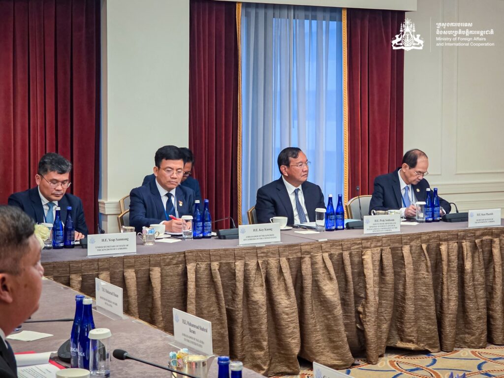 ភ្នំពេញនារសៀលថ្ងៃទី២៦ ខែកញ្ញា ឆ្នាំ២០២៥ ឯកឧត្ដមប្រាក់ សុខុន ឧបនាយករដ្ឋមន្ត្រី រដ្ឋមន្ត្រីការបរទេស និងសហប្រតិបត្តិការអន្តរជាតិ បានអញ្ជើញចូលរួមកិច្ចប្រជុំ ១+៣ ដែលមានការចូលរួមពីអនុរដ្ឋមន្ត្រីការបរទេសអាម៉េរិក និងរដ្ឋមន្ត្រីការបរទេសកម្ពុជា ម៉ាឡេស៊ី និងថៃ នៅទីក្រុងញូវយ៉ក សហរដ្ឋអាម៉េរិក។