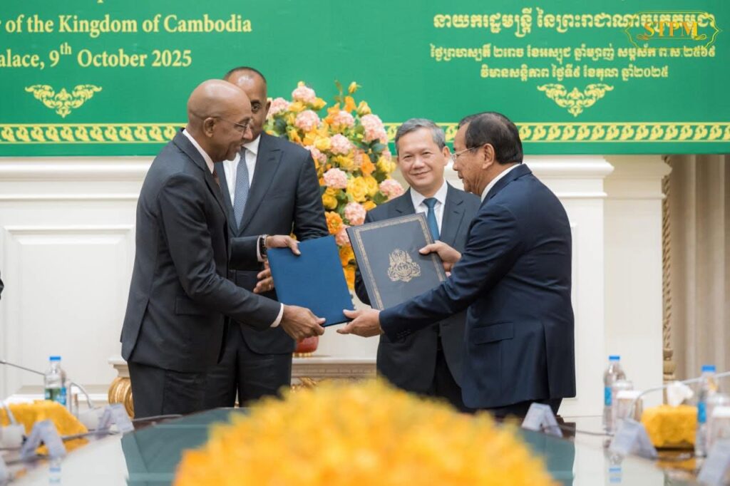 ភ្នំពេញ៖សម្តេចមហាបវរធិបតី ហ៊ុន ម៉ាណែត នាយករដ្ឋមន្ត្រីនៃកម្ពុជា នៅព្រឹកថ្ងៃទី៩ ខែតុលា ឆ្នាំ២០២៥នេះ បានជួបពិភាក្សាការងារទ្វេភាគីជាមួយលោក រ៉ូសឺវែល ស្កឺរីត (Roosevelt Skerrit) នាយករដ្ឋមន្ត្រីនៃកុំមិនវែលដូមីនីក និងគណៈប្រតិភូជាន់ខ្ពស់ ក្នុងឱកាសនៃដំណើរទស្សនកិច្ចការងារនៅព្រះរាជាណាចក្រកម្ពុជា។