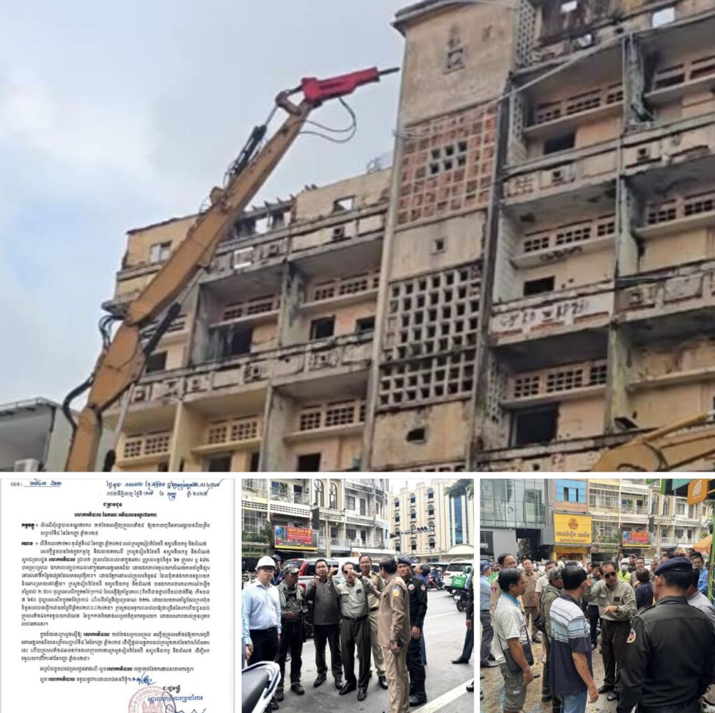 អគាអតីត «សណ្ឋាគារអង្គរមានជ័យ» អាយុកាល៧៥ឆ្នាំដែលទ្រុឌទ្រោមខ្លាំងត្រូវក្រសួងរៀបចំដែនដីនិងអាជ្ញាធររាជធានីភ្នំពេញចាប់ផ្តើមវាយរំលំ