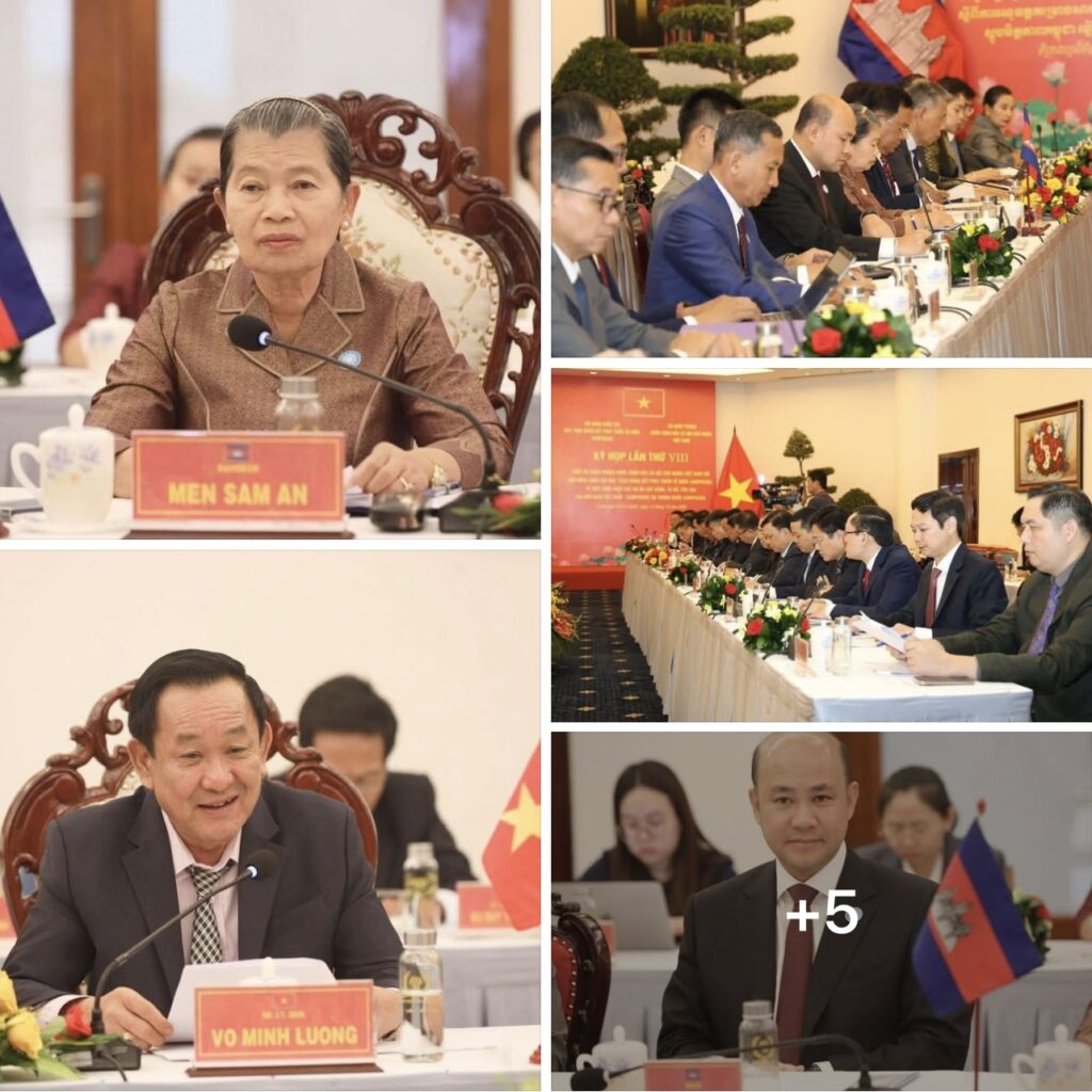 ក្រុងហូជីមិញ៖សម្តេចកិត្តិសង្គហបណ្ឌិត ម៉ែន សំអន ប្រធានក្រុមប្រឹក្សាជាតិរណសិរ្ស សាមគ្គីអភិវឌ្ឍន៍មាតុភូមិកម្ពុជា និង ឯកឧត្តម ឧត្តមសេនីយ៍ឯក Vo Minh Luong អនុរដ្ឋមន្ត្រីក្រសួងការពារប្រទេស ប្រធានគណៈប្រតិភូ បានដឹកនាំកិច្ចប្រជុំលើកទី ៨ ស្តីពីការអនុវត្តគម្រោងសាងសង់ ជួសជុល កែលំអរ លើកសោភណ្ឌភាពស្តូបមិត្តភាពនៅព្រះរាជាណាចក្រកម្ពុជា នៅទីក្រុងហូជីមិញ នាព្រឹកថ្ងៃទី១៥ ខែតុលា ឆ្នាំ២០២៥។