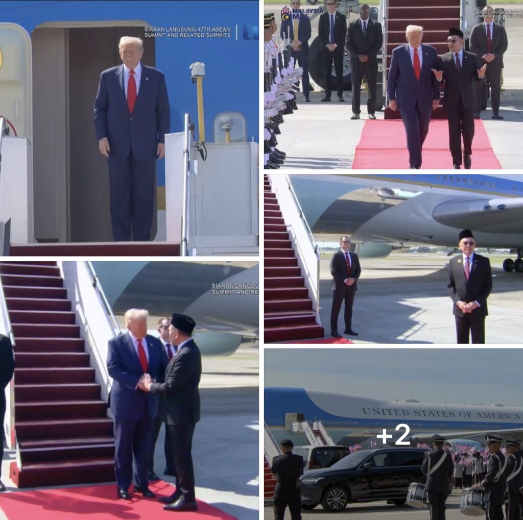 ម៉ាឡេស៉ី៖ ប្រធានាធិបតីអាមេរិក លោក ដូណាល់ ត្រាំ បានអញ្ជើញមកដល់ទីក្រុងកូឡាឡាំពួ ប្រទេសម៉ាឡេស៉ីហើយ ម៉ោងប្រមាណ១០ព្រឹក (នៅកម្ពុជាម៉ោង៩ព្រឹក) ថ្ងៃទី២៦ ខែតុលា ឆ្នាំ២០២៥នេះ ដើម្បីចូលរួមធ្វើជាសាក្សីនៃពិធីចុះកិច្ចព្រមព្រៀងសន្តិភាពកម្ពុជា-ថៃ និងចូលរួមក្នុងកិច្ចប្រជុំកំពូលអាស៊ាន លើកទី៤៧។
