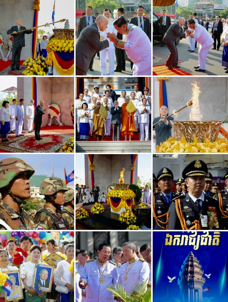ភ្នំពេញ៖នៅព្រឹកថ្ងៃអាទិត្យ ៥រោច ខែកត្ដិក ឆ្នាំម្សាញ់ សប្ដស័ក ព.ស.២៥៦៩ ត្រូវនឹងថ្ងៃទី៩ ខែវិច្ឆិកា ឆ្នាំ២០២៥នេះ ដូចទៅនឹងបណ្តាឆ្នាំកន្លងទៅផងដែរ កម្ពុជា បានប្រារព្ធព្រះរាជពិធីបុណ្យឯករាជ្យជាតិ ៩ វិច្ឆិកា ខួបលើកទី៧២ឆ្នាំ ដែលជាថ្ងៃខ្មែរ រំដោះខ្លួនចេញពីការគ្រប់គ្រងរបស់បារាំង។